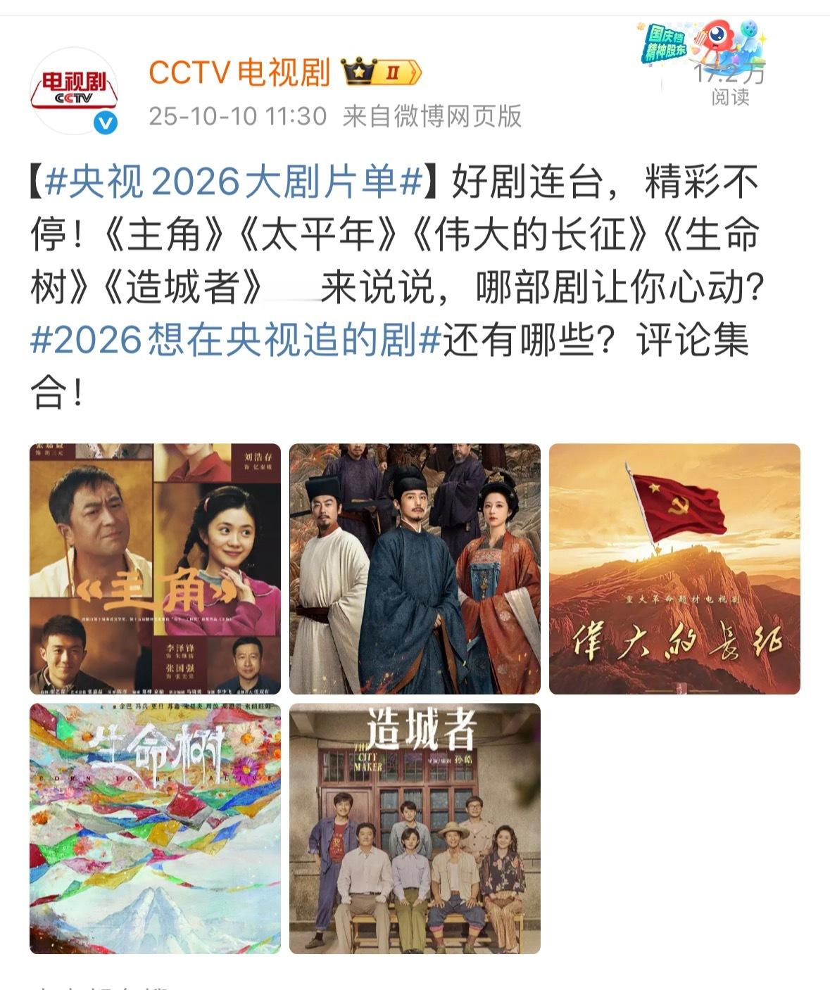 赵丽颖黄晓明新剧登总台片单央8发的2026年想在央视追的剧,是不是意味着《造城者》将在央视播❓