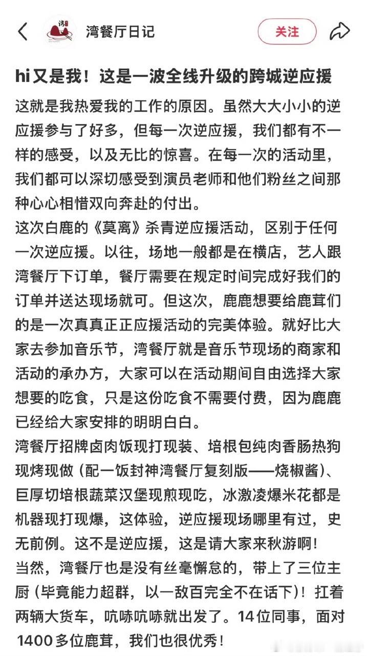 白鹿[超话]白鹿莫离杀青现做逆应援餐白鹿逆应援餐现场做呜呜呜羡慕在现场的粉丝~[