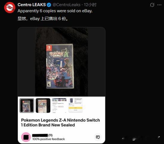 据任天堂资讯博主CentroLeaks报道称,《宝可梦传说:Z-A》实体版似乎已经偷跑,并附上了游戏实体版正反两面的展示照片。 另一名资讯博主Nintendeal也在稍后确认了这一消息,目前似乎已有大量《宝可梦传说:Z-A》的实体版流出到了市场上,他提醒各位玩家小心剧透。 CentroLeaks还在另一篇推文中补充表示,目前在二手交易平台eBay上已经卖出了6份。