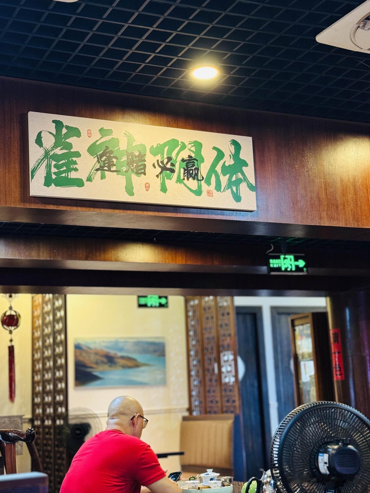 在老城区逛累了,误打误撞钻进一家老式茶餐厅,一抬头就被“雀神附体 逢赌必赢”的招牌笑道!复古木梁配中式屏风,墙上还挂着山水油画,风扇呼呼转着,大叔穿着红T恤边喝茶边刷手机,烟火气和江湖气混在一块儿,这味儿绝了!在这儿喝口茶,感觉自己都要变成“雀神”了~ 店里的摆设都是那么吸引眼球,还有一只小狐狸?应该是标本,咱也没敢问[笑哭]