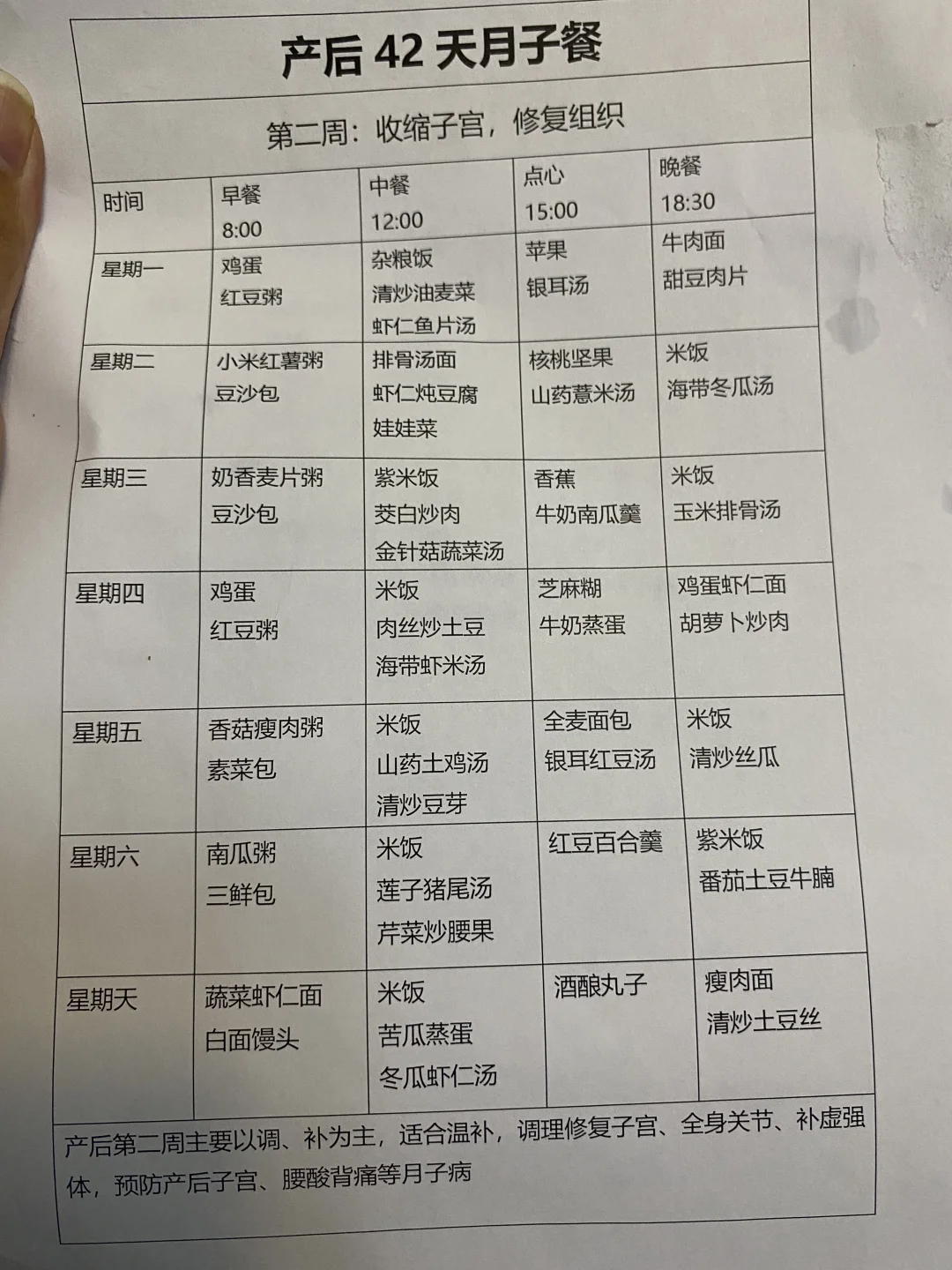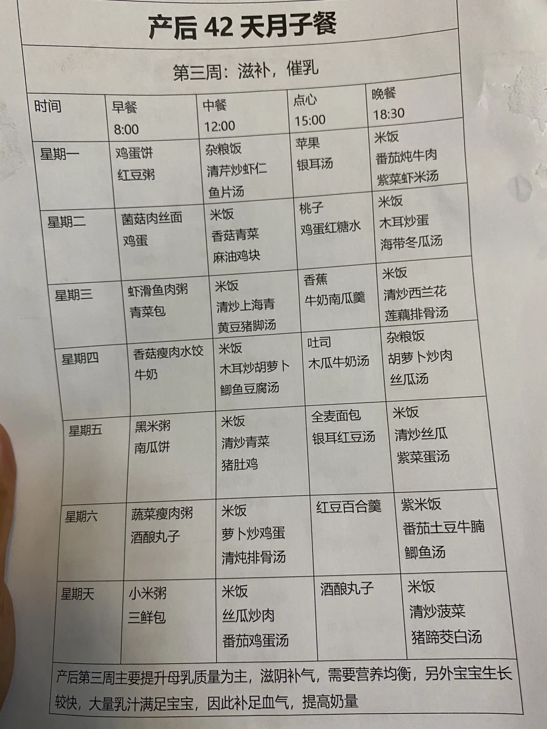 🔆每日三餐菜谱看图片👆,另外把月子里每周适合喝的月子水放到下边啦,姐妹们可以看看!