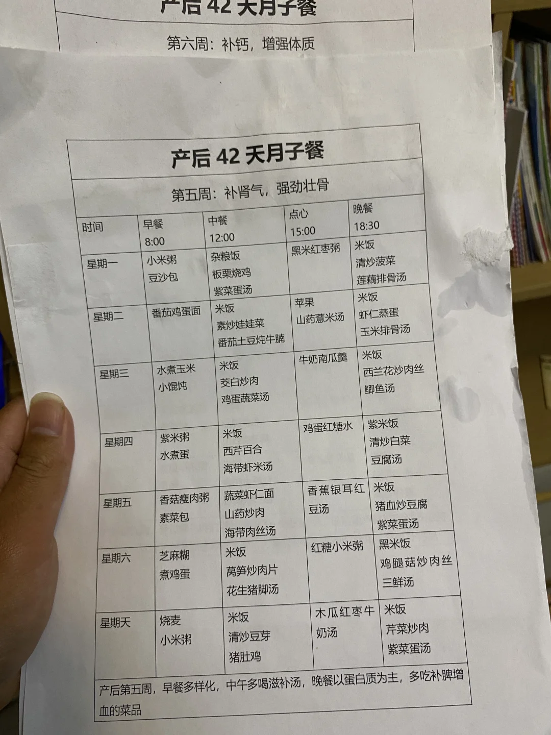 📖建议:第六周妈妈需要摄入的营养也是比之前多,但是也要控制脂肪量的摄入,母乳妈妈后面需求也是比较大的,多吃含蛋白质丰富的以及补充气血类食物。