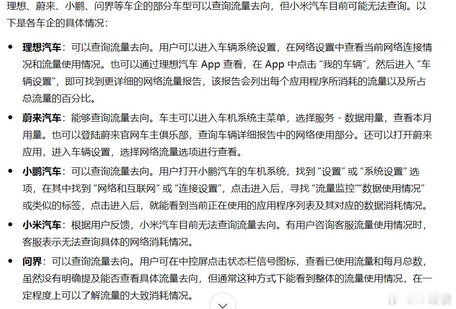 更不合理的是,小米汽车没法查询流量用途!其他家都可以。