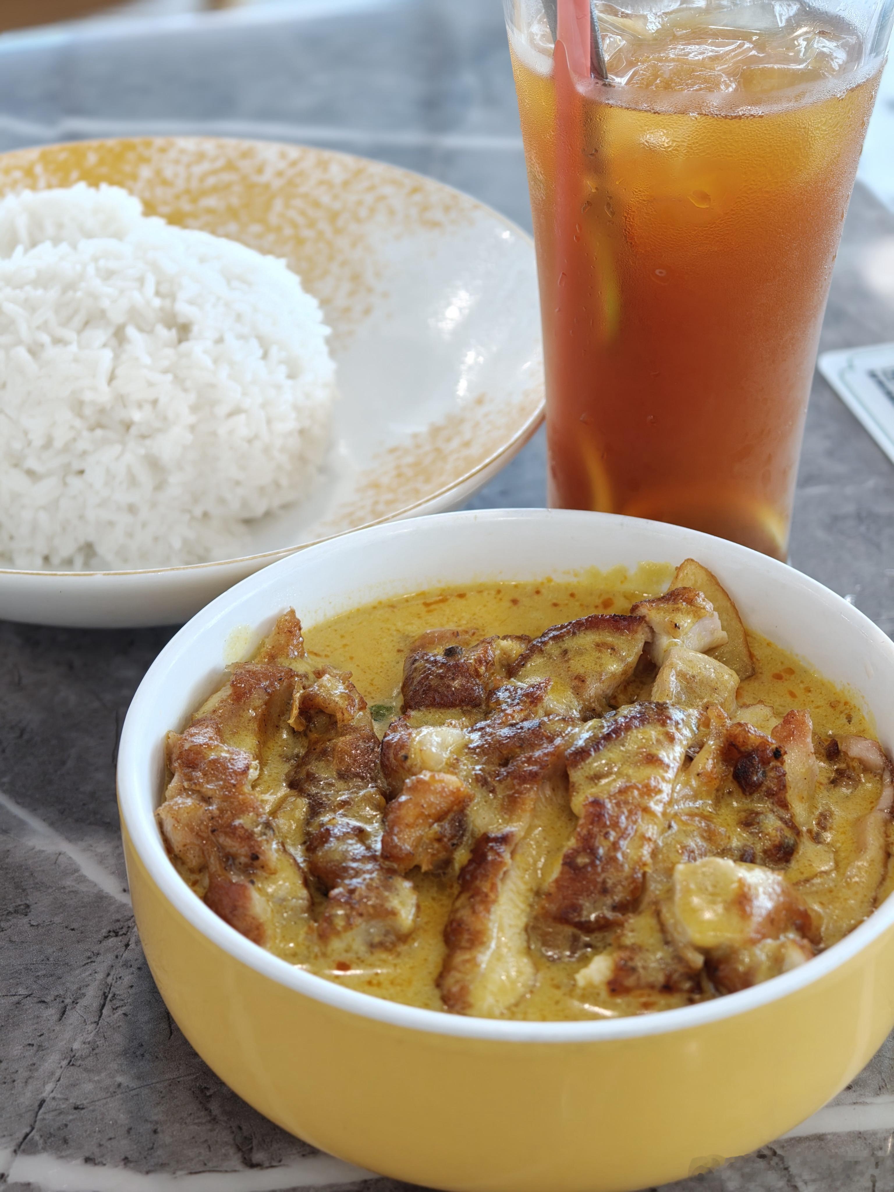 我点了份咖喱鸡排套餐(25元),鸡肉份量很足,咖喱味道也挺浓郁。至于柠檬茶,可能是因为我选了少糖,所以喝着淡淡的~