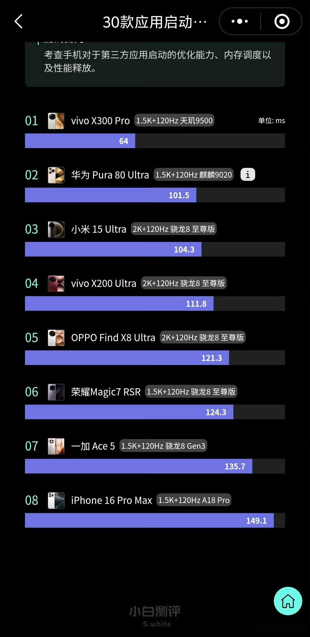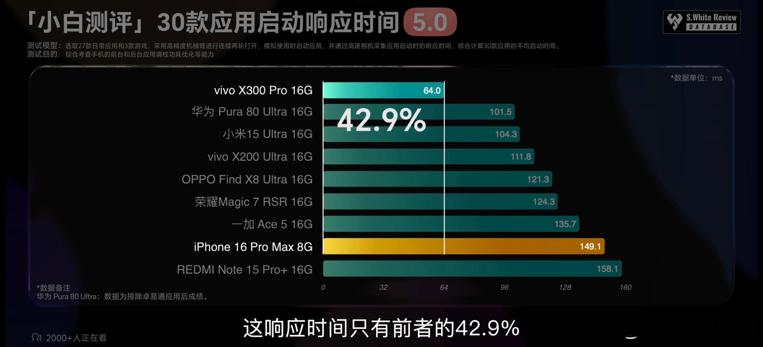 OriginOS 6首发搭载vivo自研蓝河流畅引擎,从计算、显示、存储三大核心模块入手,深度重构安卓核心系统。不管是应用启动速度、数据加载速度,还是内存回收速度都大幅提升。媒体测评30款应用启动响应时间,X300 Pro直接断档式排第一,平均64毫秒,是榜单里唯一进100毫秒的机型,这意味着无论是日常使用还是频繁切换应用,都能感受到“秒开”的畅快。