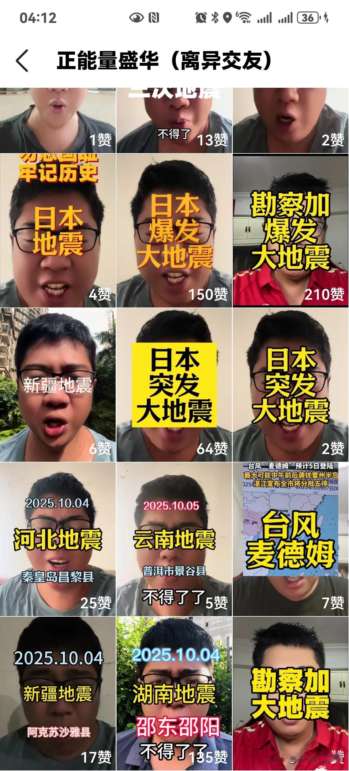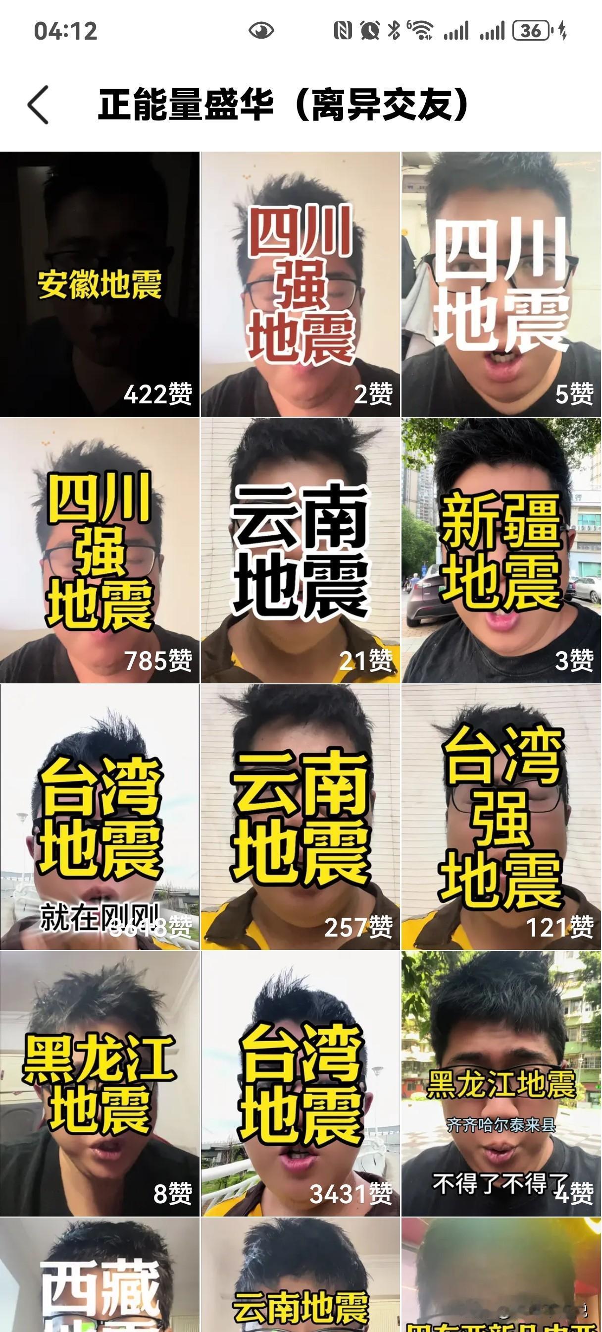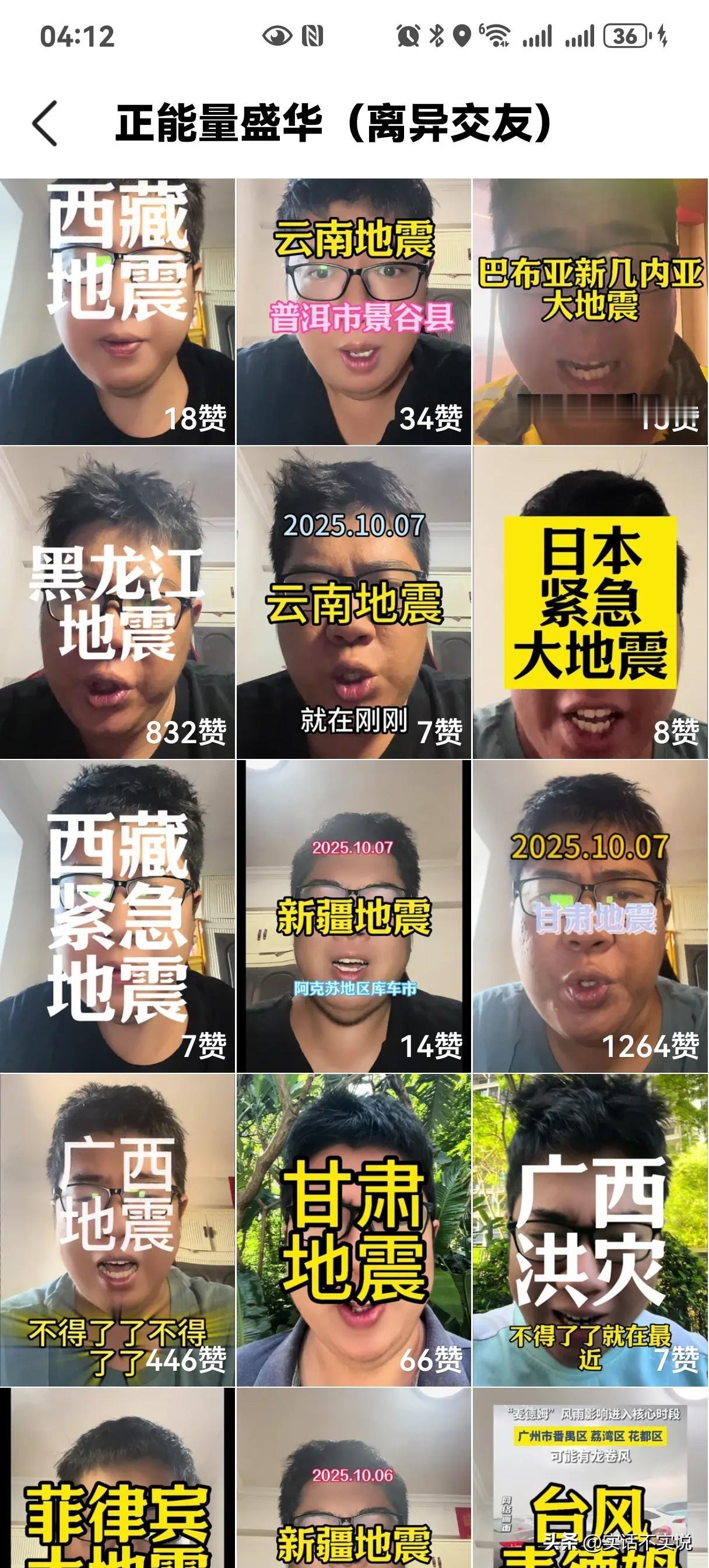 这个人就是利用全世界每天都有各种大大小小的地震的事实,做擦边自媒体作者。 他一般第一句话就是:不得了了,不得了了,哪里哪里大地震了!也能吓唬到一部分人。 现在国家言论自由,但是却太宽松了。我个人认为,这种类型的自媒体作者真的除了危害作用,看不到任何正面作用。