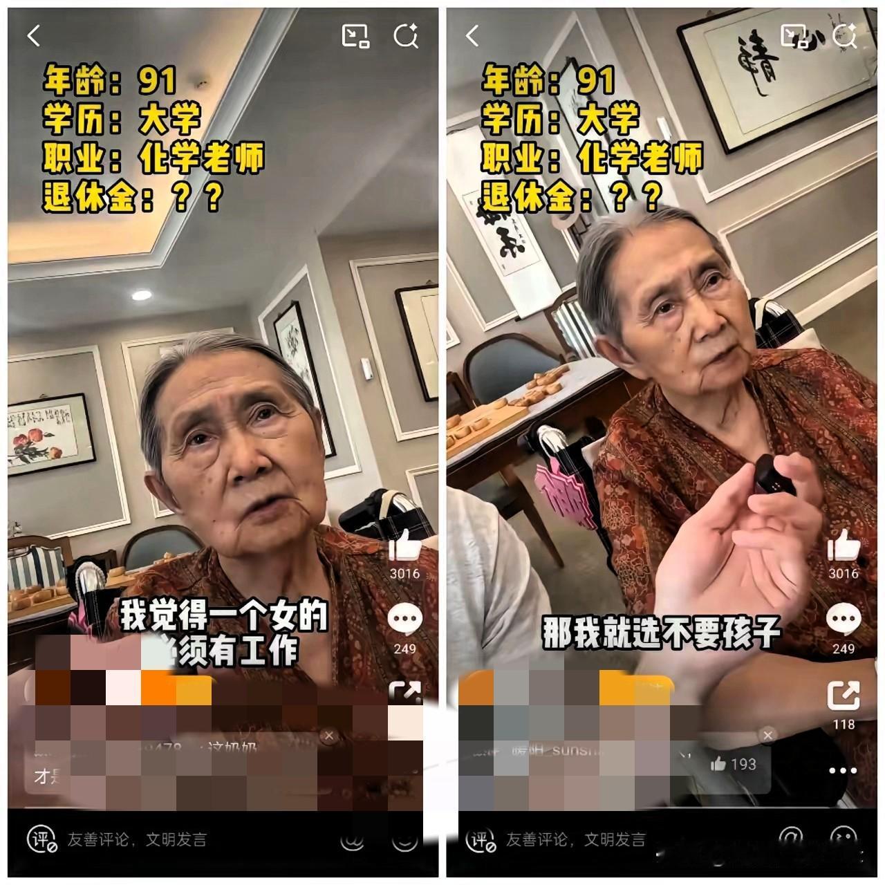 今天看了一位91岁退休老师的故事,不仅让人感慨“养儿防老”的意义,她住在养老院里
