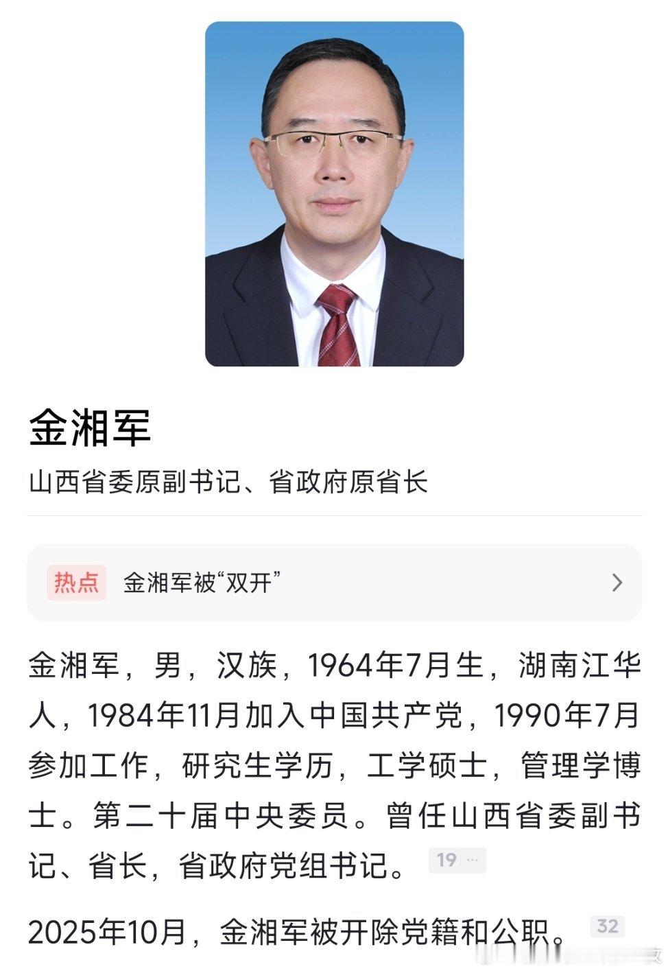 山西省委原副书记、省政府原省长金湘军被“双开”!热点现场
