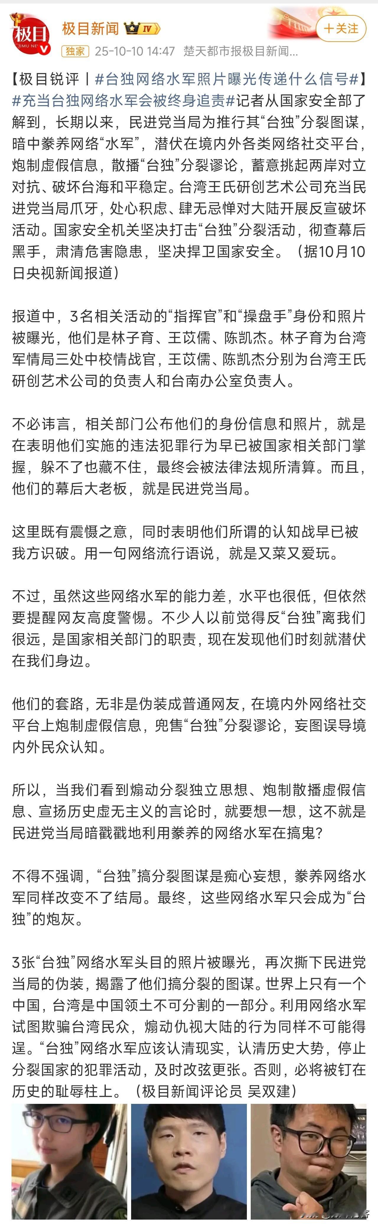 台湾水军,境内外网络上联动,对大陆搞反宣传破坏行动! 看看台湾水军这种歪瓜裂枣,很多热点事件,对立事件,都有这些水军在联动推波助澜,甚至是故意进行撕裂破坏!