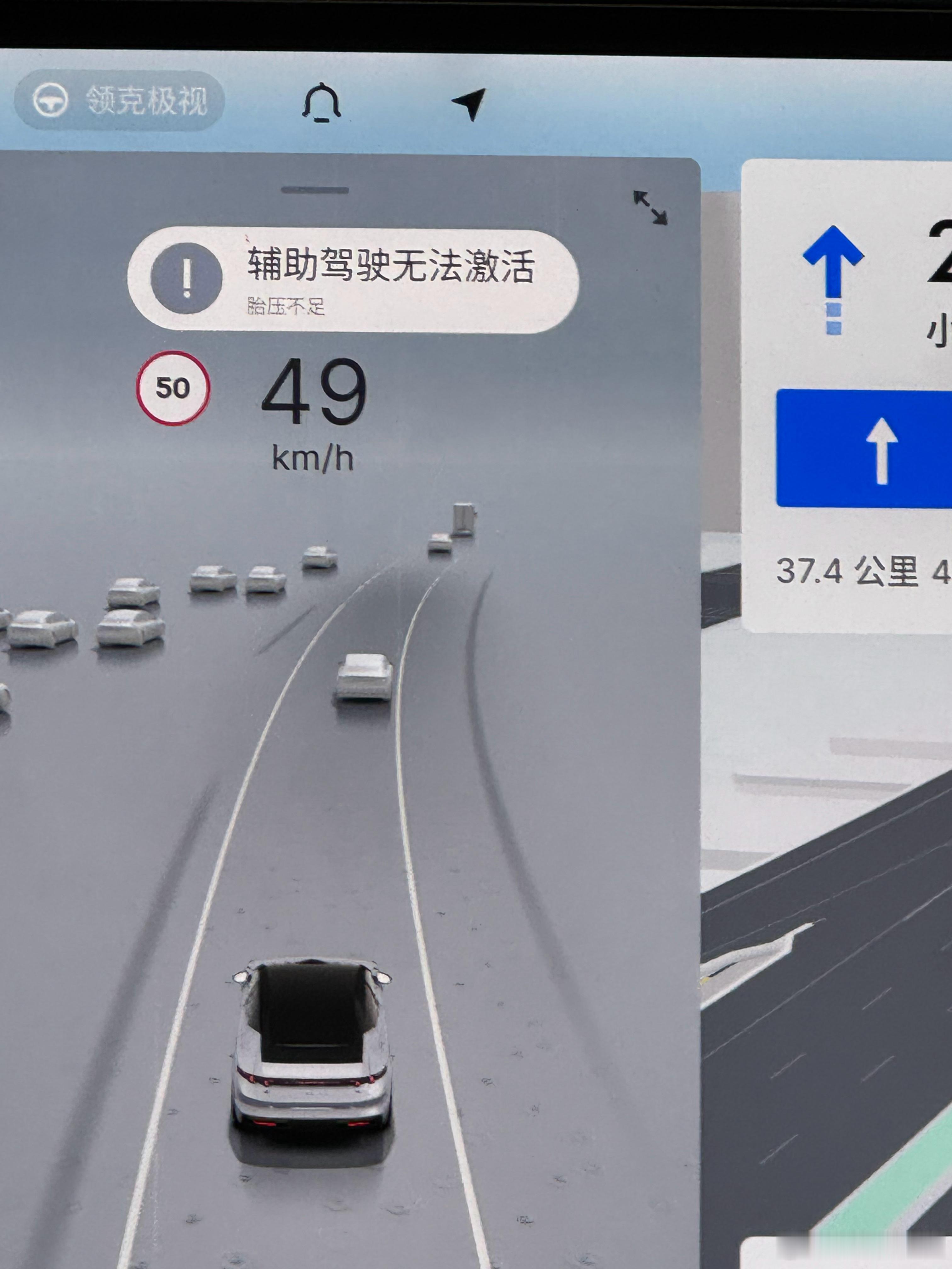 开领克在环路上想用辅助驾驶(怪我没提前检查检查车辆),但被提示无法激活,下面写着“胎压过低”,还真是头一次遇到这种情况,平时无法激活驾驶辅助,主要原因都是因为天气。