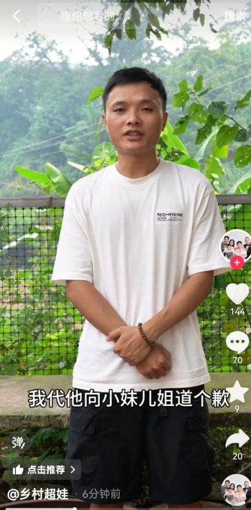 超娃扛不住,出来道歉了。 超娃感谢小妹儿姐带他们一家人赚钱,肯定了她对他们家的账