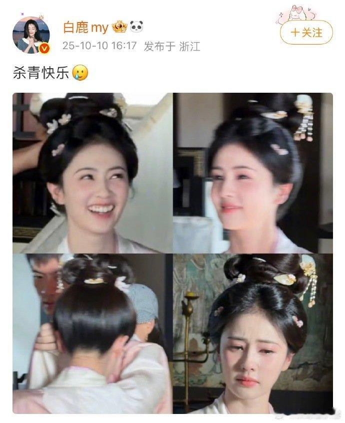 白鹿叶璃杀青快乐四宫格白鹿叶璃杀青了镜头定格的瞬间,叶璃的故事圆满落幕。感谢白