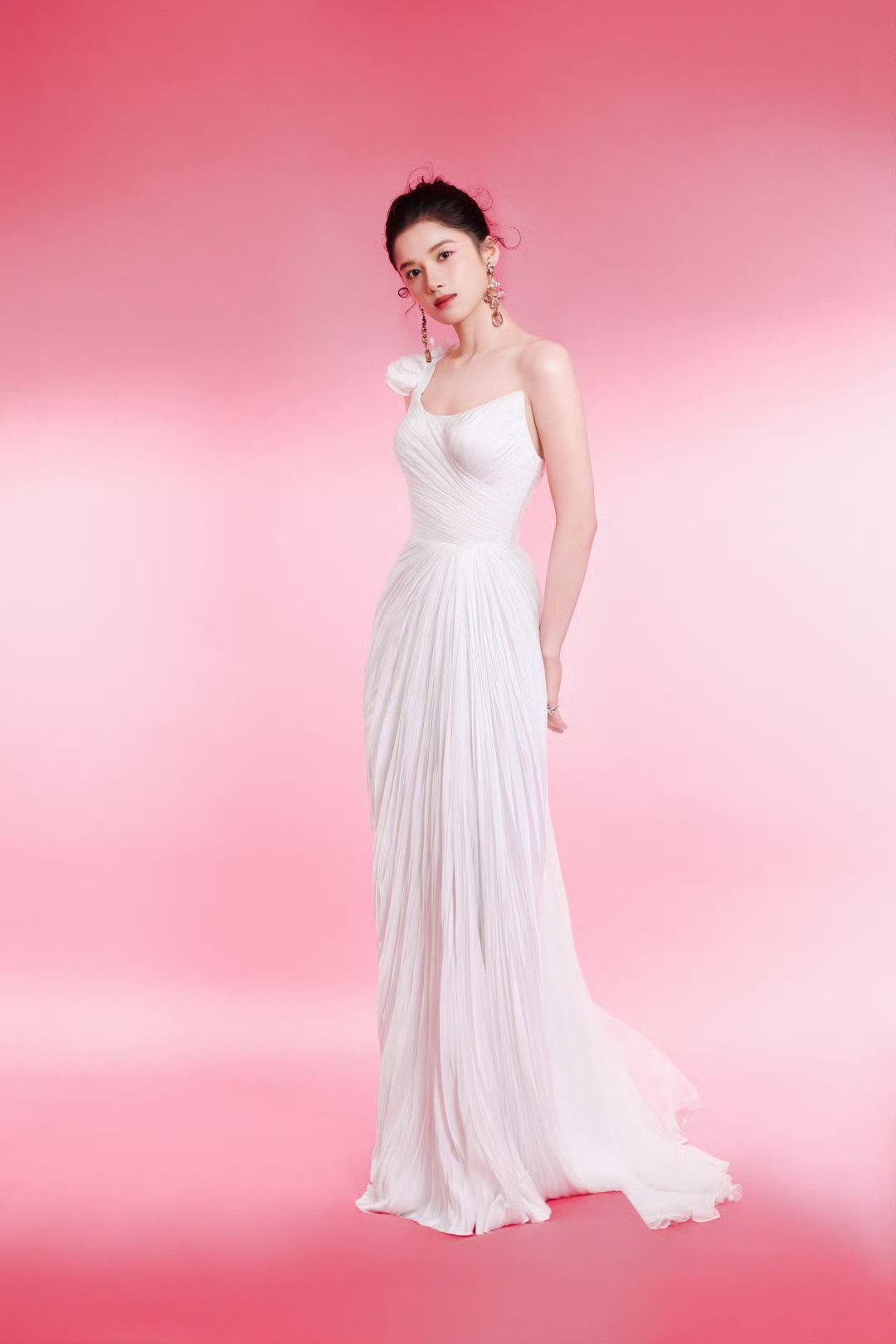 张婧仪白色单肩长裙张婧仪白色单肩裙绝对神女,太美太美了
