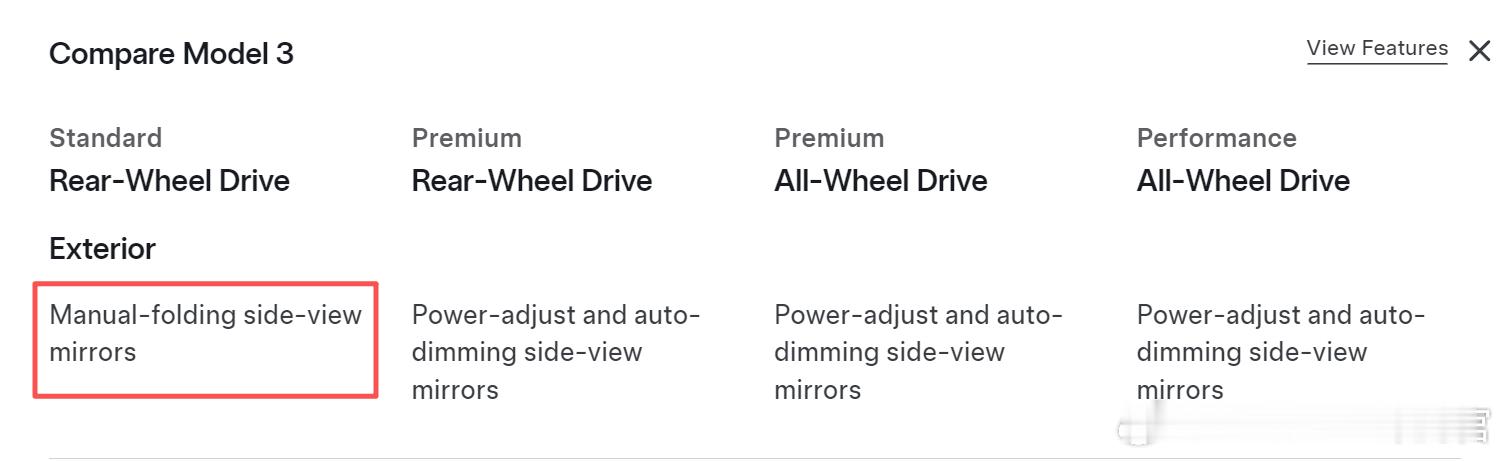 本来以为标准版Model Y的后排杯架已经够“寒酸”的了,没想到标准版Model 3甚至连后视镜的电动调节功能都给砍了,这降本也太狠了[允悲]