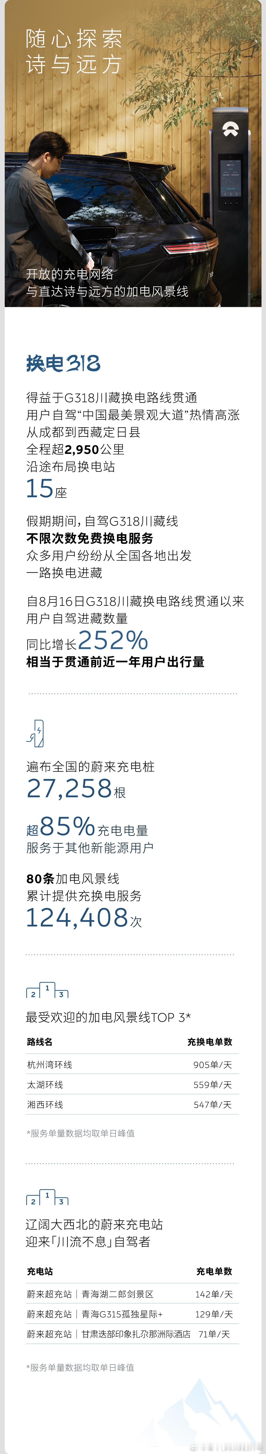 G318川藏换电路线贯通50余天,蔚来、乐道进藏用户同比增252%
