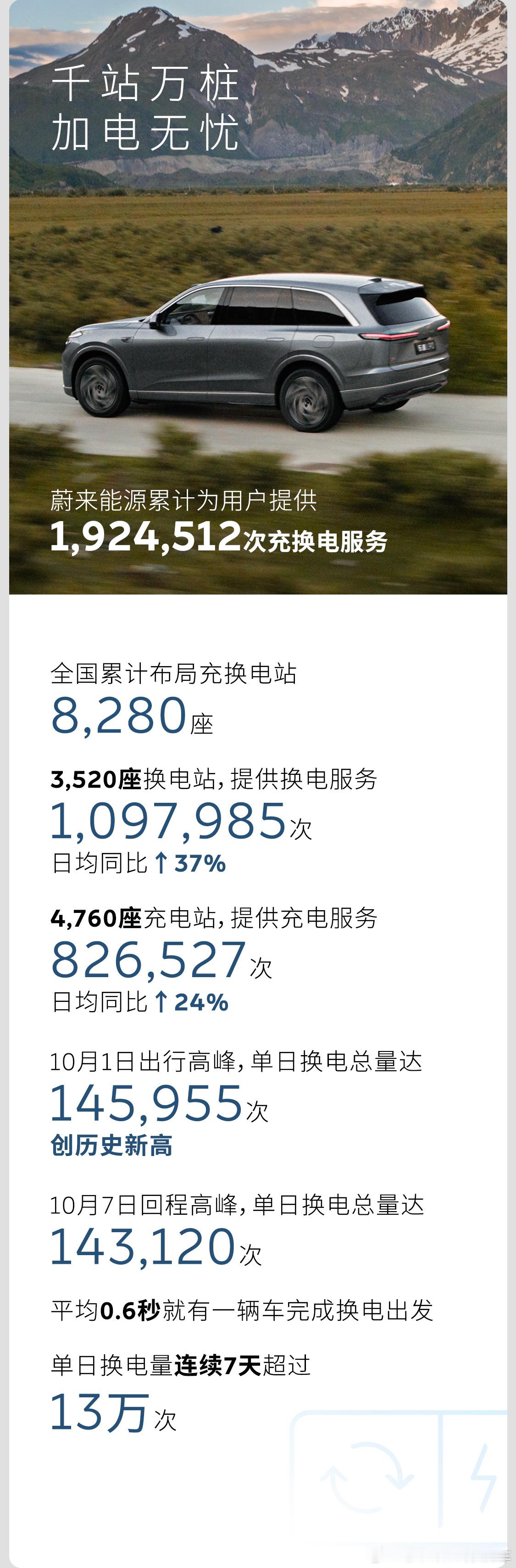 蔚来十一换电数据公布,总量109.8万次、单日14.6万次,再创新高