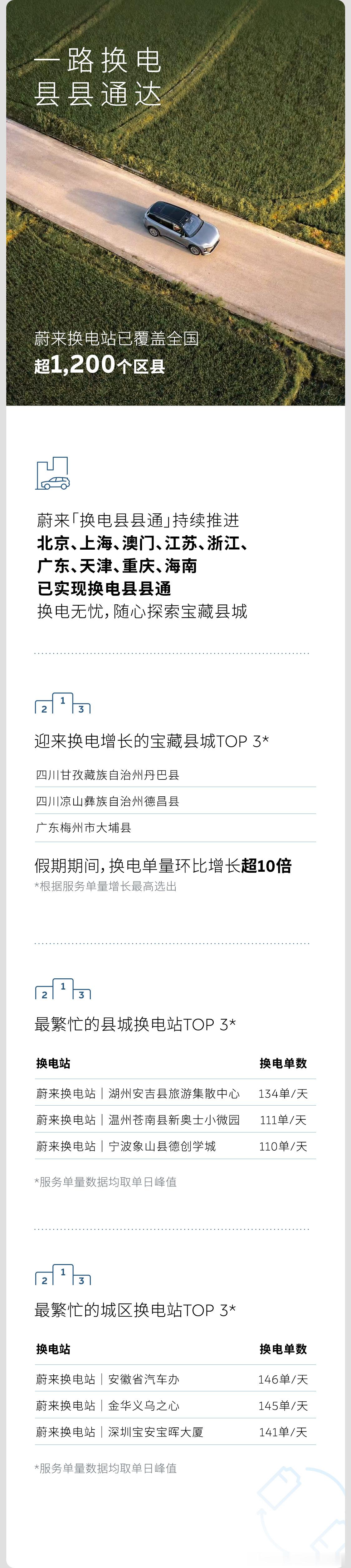用户总行驶里程突破4.9亿公里,其中,511位用户行驶里程超过5000公里,超7.4万用户单日行驶里程超过500公里,有超过20.7万名用户出行全程仅使用换电进行补能。全程换电行程最长的一位用户,从安徽宣城出发自东向西,横跨6省途径18城,抵达西藏拉萨,行驶里程约4000公里。