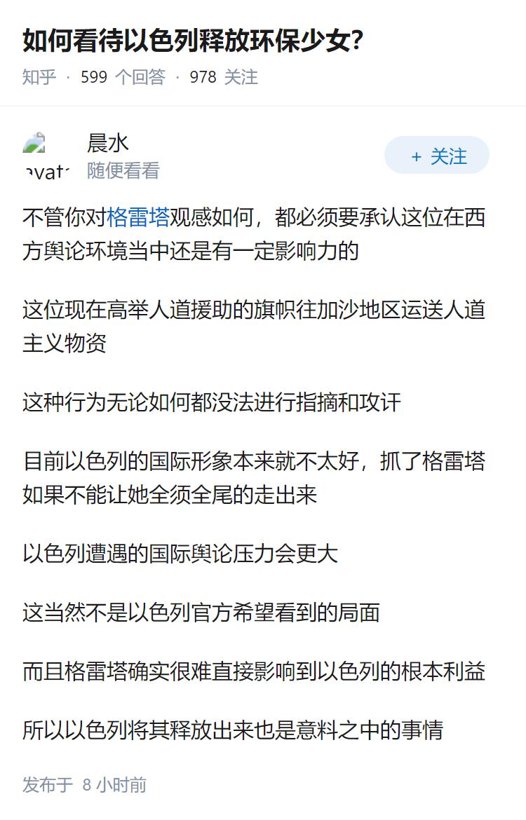 如何看待以色列释放环保少女?