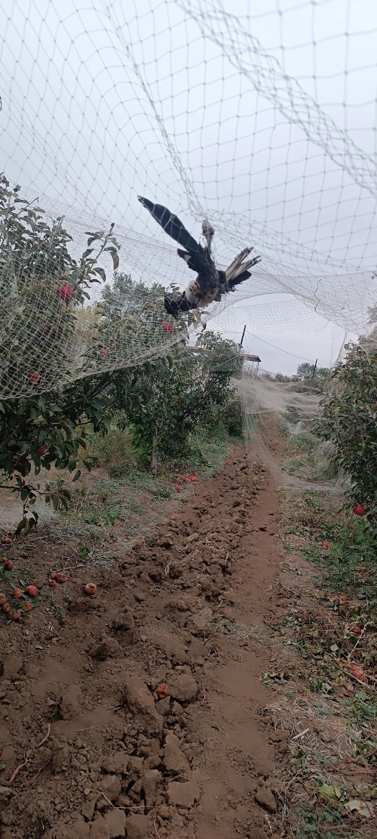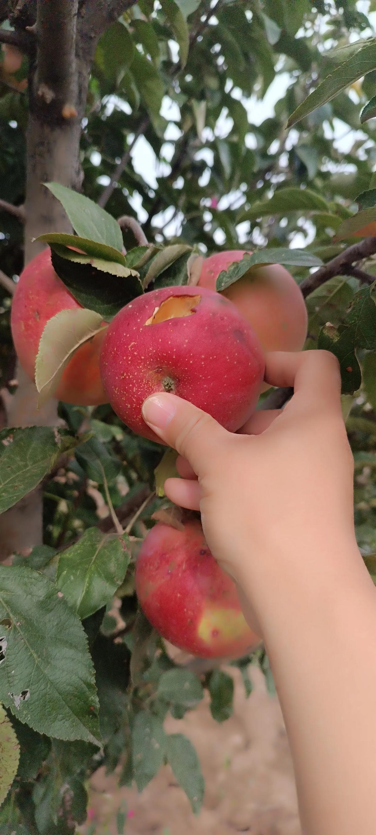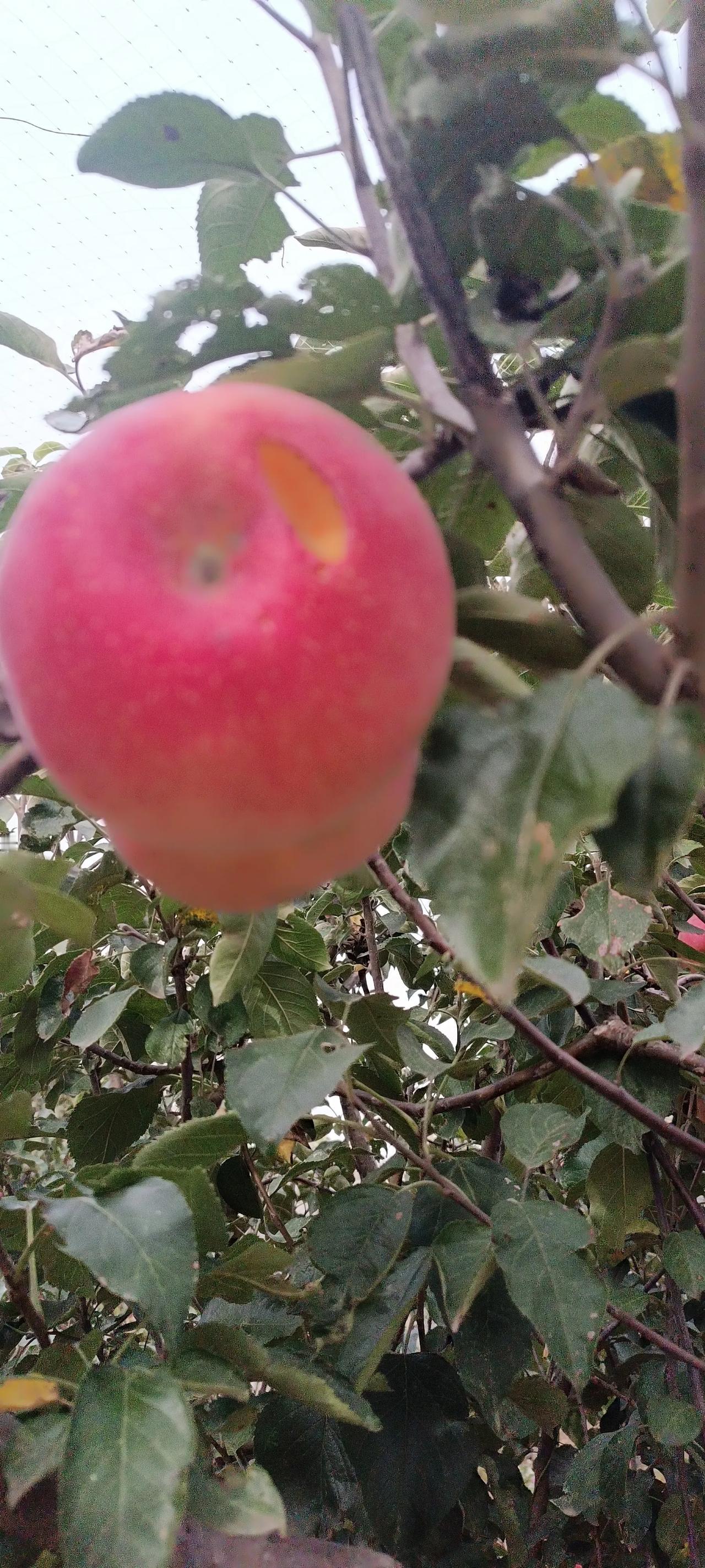 喜鹊吃苹果,这个我还是第一次听到和看到。今天中午我和朋友去了蒙古贞采摘园,园子里的葡萄,鸡心果和大枣已下架,只剩下苹果了。庄主告诉我俩,他家的苹果从开花到果子成熟,一次药也没打过,纯天然无公害。一进果园,上面都拉着大网,把苹果树罩了起来,一问才知道,这是防喜鹊的。天呢,喜鹊还吃苹果呢!我这可是第一次听说,再定睛细看挂在树上的苹果,向阳的,个大的,皮红的,还真都被喜鹊啄过,看来喜鹊还真聪明,专门挑一等果子吃。这大网也挺管用,我看见一只大喜鹊就被粘在网上了,“鸟为食亡”说得真没错。这就是国光苹果,我爱吃,觉得比富士更有苹果味,2.5元一斤,我和朋友各摘了一兜儿。因为这果没经过任何处理,最多也就能放半个月。但毕竟是自己亲自摘的,还一点药也没喷过,吃着放心。