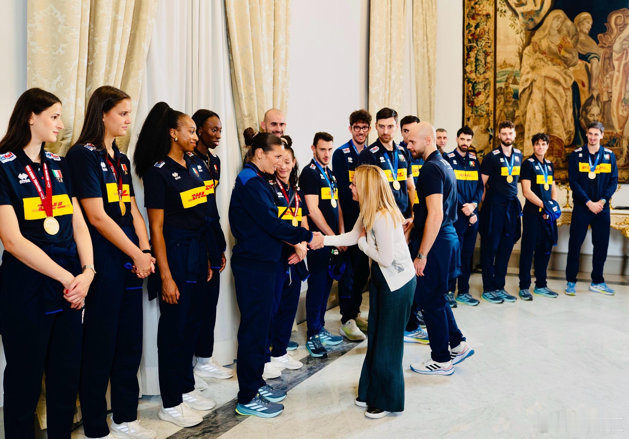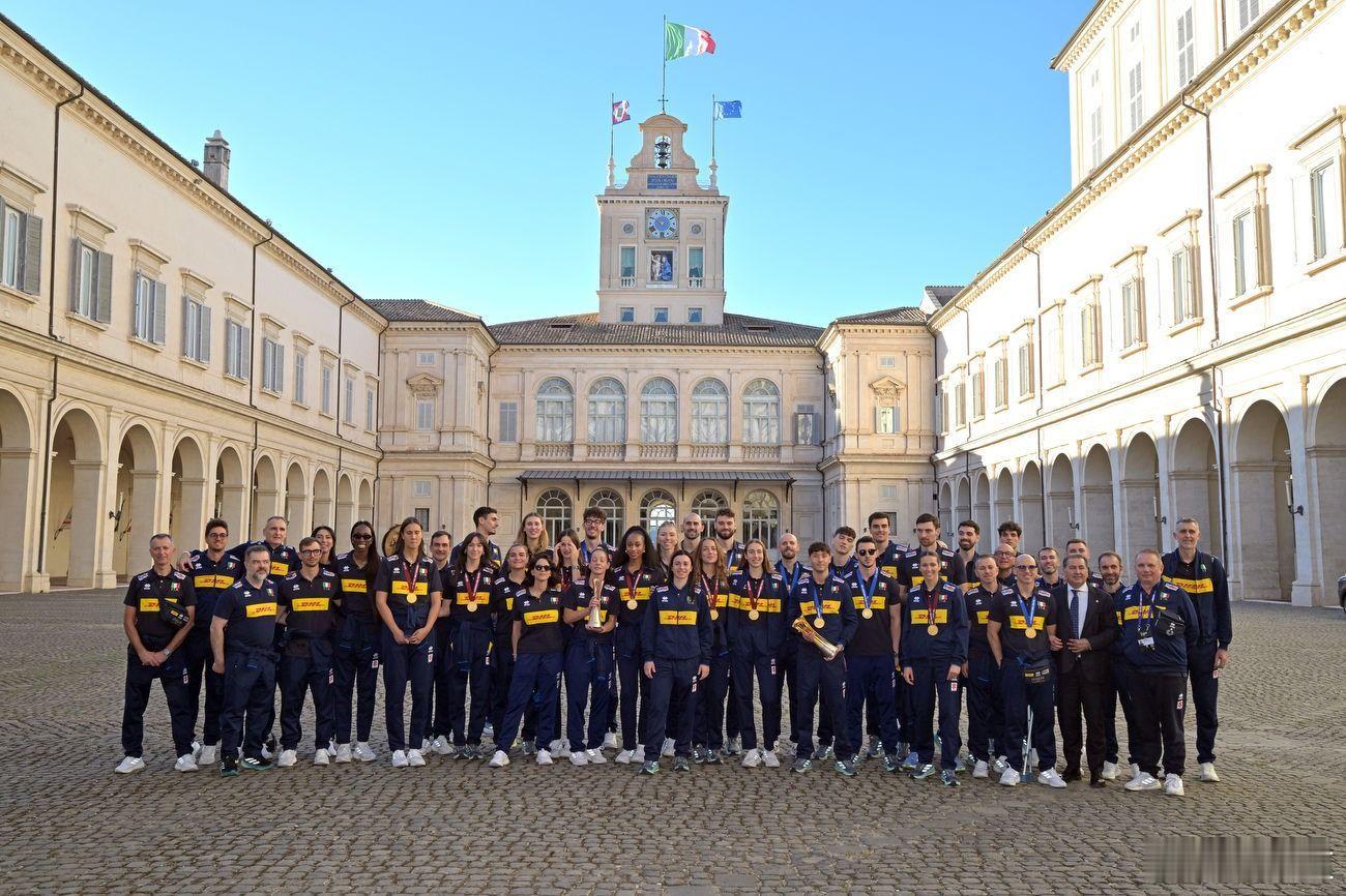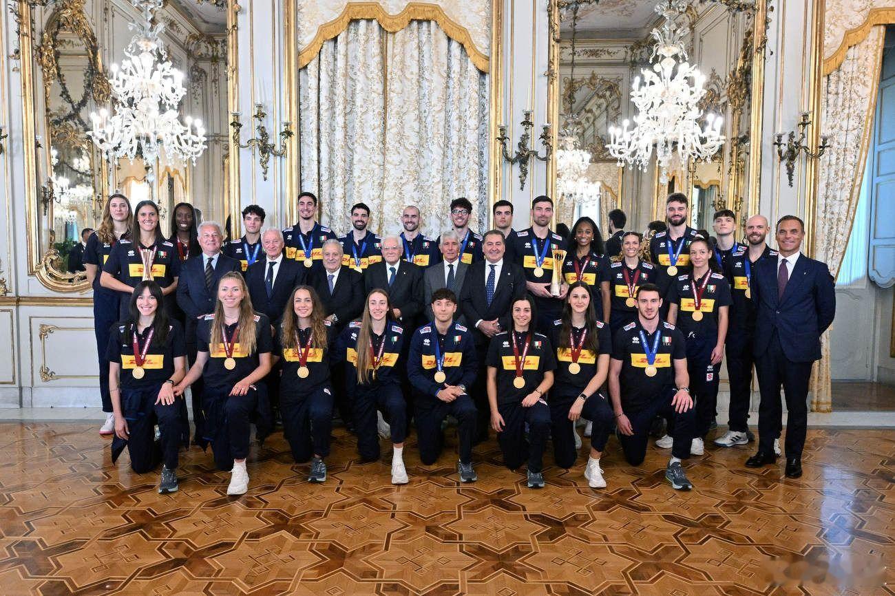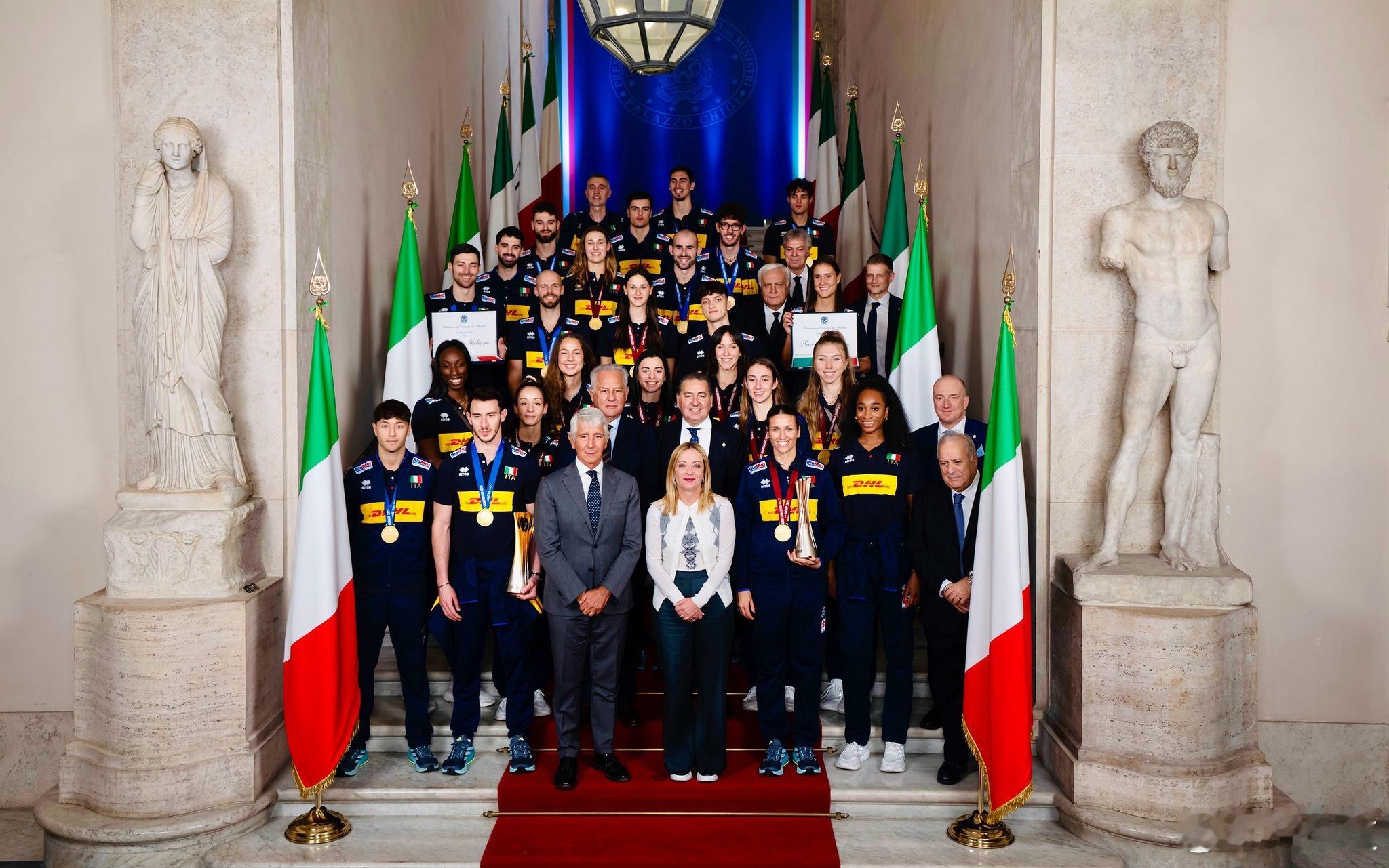 国际排坛动态意大利女排意大利男、女排国家队在 2025 年世界排球锦标赛中双双夺冠后,于罗马受到热烈表彰。两支队伍先是在奎里纳莱宫(意大利总统府)受到总统塞尔焦・马塔雷拉的接见,随后又在基吉宫(意大利总理府)得到总理乔治娅・梅洛尼的迎接。