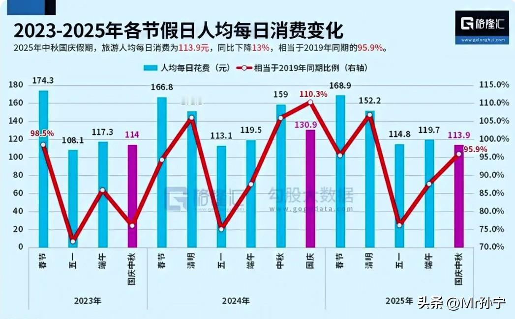 国庆结束了,但有一个言论,老孙不敢苟同,大家来说说看。 今天,看到不少人在感叹,国庆短短8天,有8.88亿人次出游,消费了8090亿。看上去不错,也比去年增加了很多,但算了下平均消费,每个人每天只有113.9元,反倒下滑了13%。 有专家就立马说,这说明消费还是没有复苏,毕竟人均消费下滑了。这个数字,也只有2019年的95.9%。也就是说,2019年,包括去年,每人每天的人均消费是比今年高的。 对于这个观点,我并不认同。要知道,人均消费下滑13%的确是事实,但大家不要忘了背景。现在人们精打细算的观念,远远超出了我们的想象。 我随便举几个身边真实的例子,以前9月、10月,汽车都卖得非常好,尤其是奔驰、宝马、奥迪,大家认为开这些进口车有面子。但今年呢?很多都是理想、问界、蔚来等,坦白讲,现在的汽车比以前好了,但却没有以前贵了。 还有几个朋友,特别喜欢奢侈品,往年的十一必定是线下专柜疯狂买,甚至不惜加价。但现在呢?要么去奥特莱斯看看有没有打折,要么就是在唯品会这类特卖平台上捡漏2、3折的Burberry、COACH等。她们觉得很幸福,节约了成本,拿到了同样的奢侈品。 还有一些朋友,往年出去旅游必须住五星级酒店,一晚上好几千。但今年呢?天价酒店、天价餐饮的消息,几乎完全消失了,取而代之的反而是性价比。有些酒店,甚至在十一期间不涨价。餐厅也是,天价大虾的新闻早就没了。 所以,不能只看人均消费下滑了,就说什么消费力不足。其实今年十一的热闹,大家是有目共睹的,大家的消费意愿并不弱。平均消费下滑的背后,是人们精打细算的真实写照!