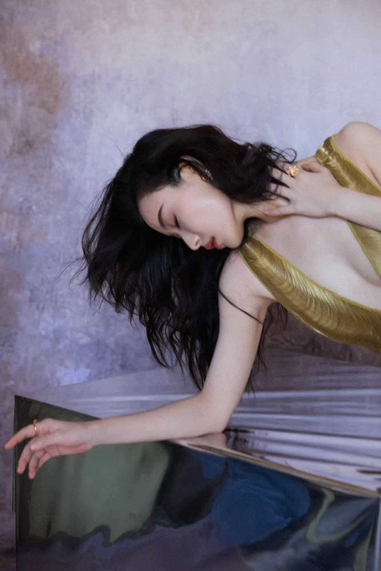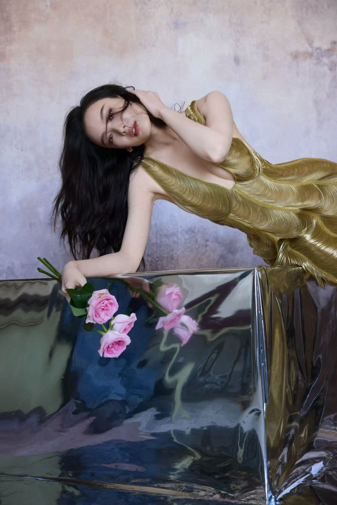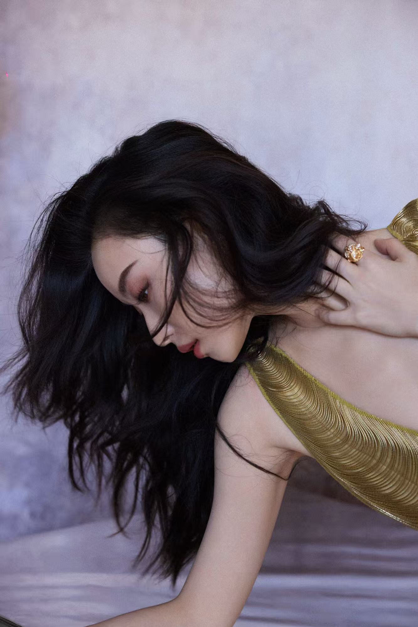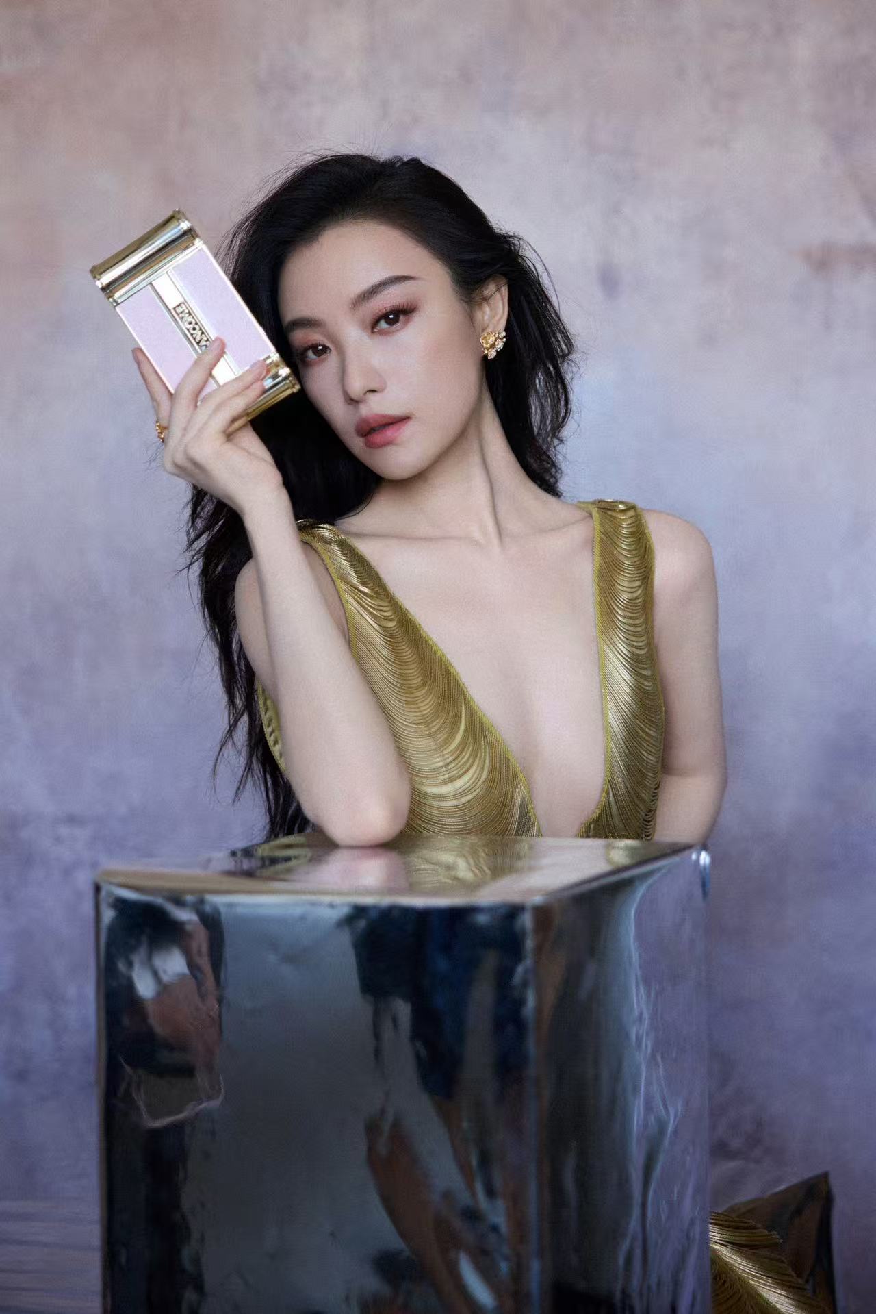 光影下的鎏金美人!身着深V礼服出席品牌活动,金属丝线编织出细腻肌理,既有雕塑般的立体轮廓,又有织物的柔软垂坠,完美平衡奢华与灵动 倪妮兰蔻全球代言人