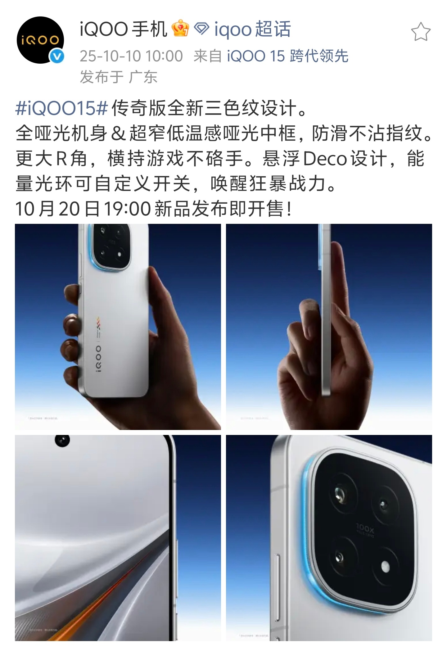 刚在2025 VDC现场见到iQOO 15真机,外观比图片更惊艳,果味十足!传奇版的全新三色纹高级精致,全哑光机身不沾指纹,握着手感特别细腻。