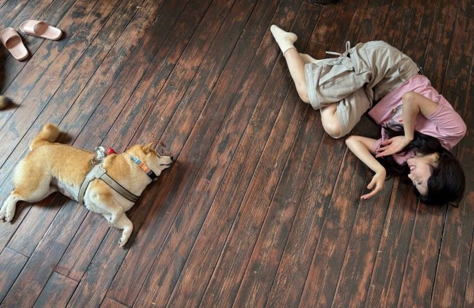 张子枫躺在地板上模仿小狗张子枫记录下雨天的日常分享永远这么治愈!她拍下的下雨天