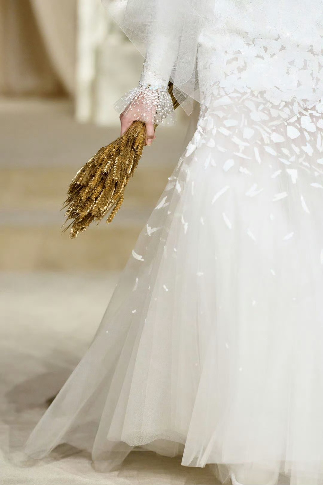 CHANEL2025秋冬高定新娘手持黄金麦穗闭场,这是香奈儿设计团队操刀的最后