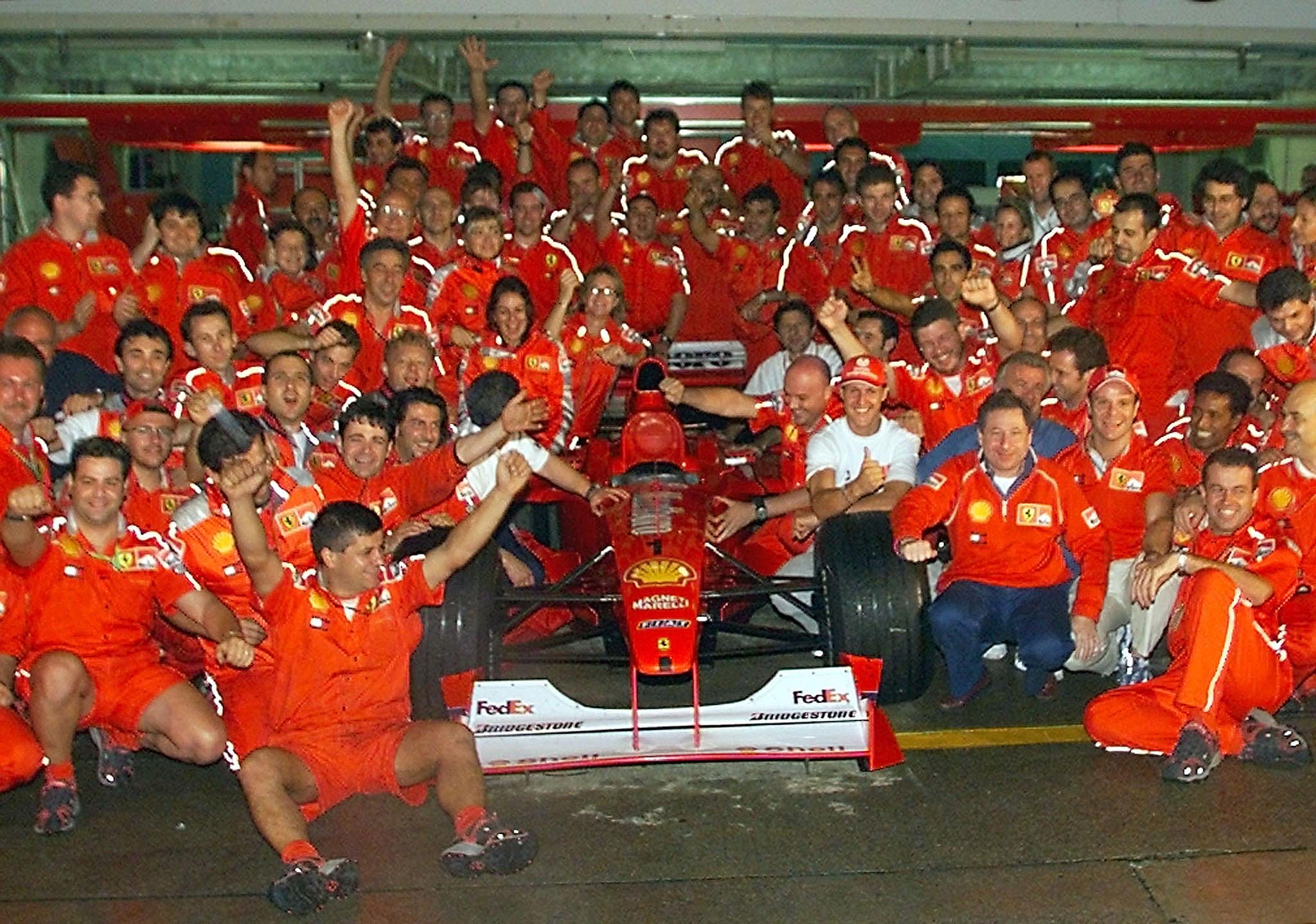 2000年10月8日,舒马赫在日本铃鹿夺冠,赢得了自己在法拉利车队的第一个车手世界冠军——至今,已经25周年了。
