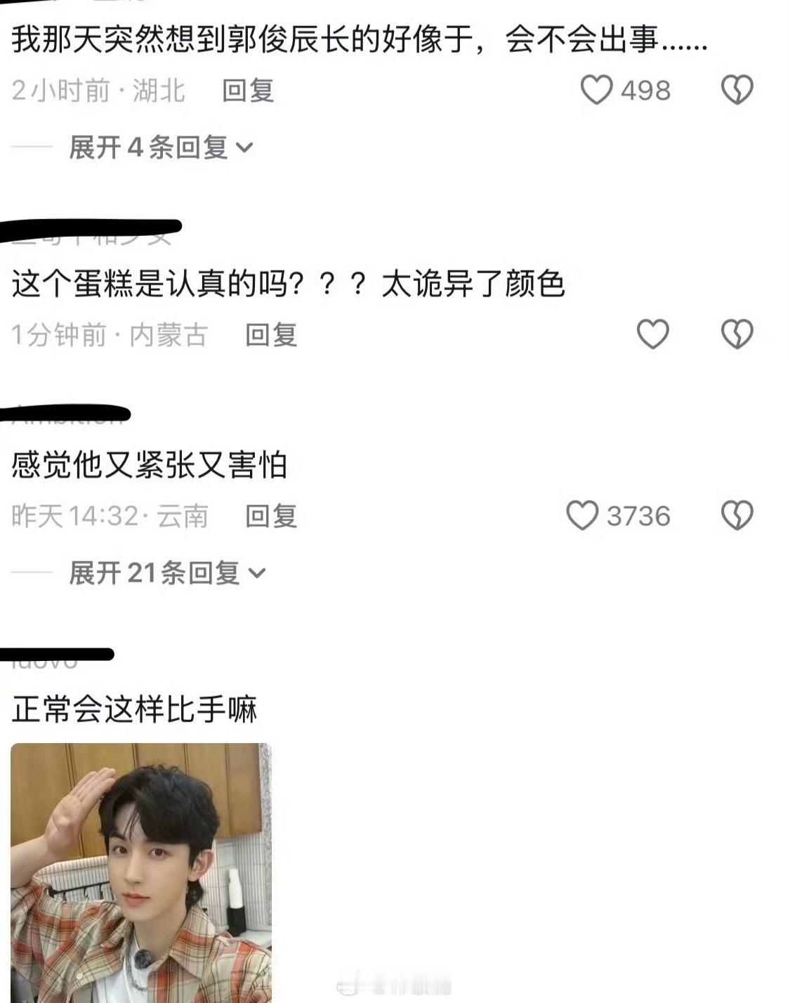 因为前段时间郭俊辰生日直播的蛋糕和手势引发各种揣测,甚至还有人虚假报案,对郭俊辰工作生活造成严重影响。真的好离谱…
