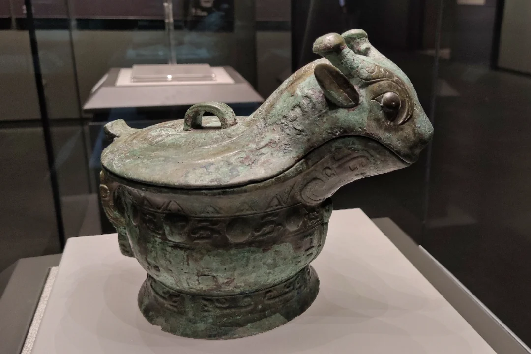 Gong was a wine vessel in ancient China . It normally has an oval body and a round foot or four feet . There are a short spout in the front and a pan handle at the back . Its lid is shaped like a beast with horns . This type of wine vessel was quite popular in the late Shang and the early Zhou . Gong vessel appeared quite often in the Book of Songs , an