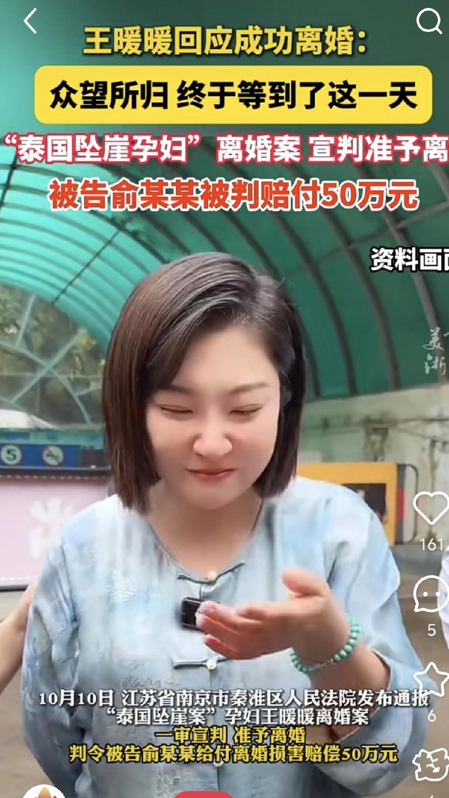 王暖暖离婚案最新进展:王暖暖成功离婚!俞晓冬精神损失费50万。但俞晓冬监禁中,王