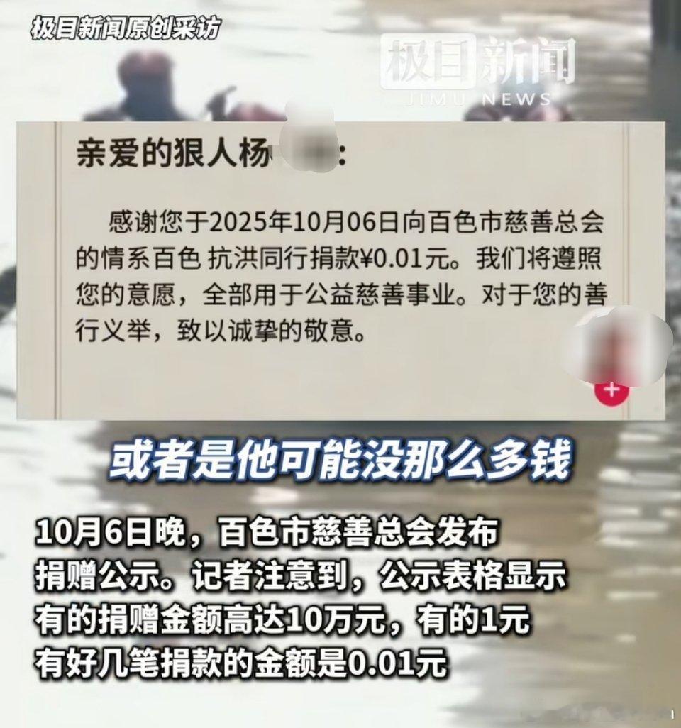 🔻有23万粉丝博主为白色抗洪捐1分钱,这名博主把捐款的截图晒出来后,遭到网友的批评。[思考][思考]