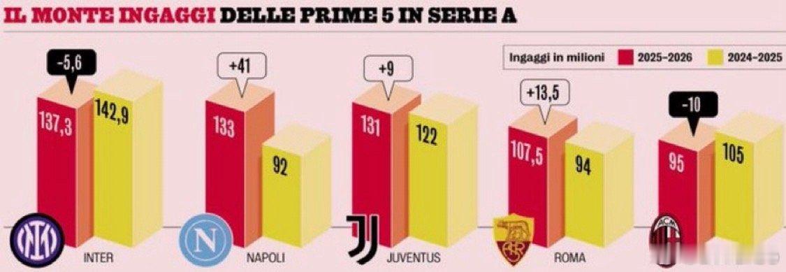 米兰体育报:意甲球队的薪资情况如下 尽管国际米兰降了薪 但仍位居榜首 国际米兰仍然是意甲薪资最高的球队 那不勒斯的薪资上涨了40%旨在提升欧洲联赛的竞争力 尤文图斯和罗马也提高了薪资来投资提升各自球队的实力国际米兰国际米兰4比1克雷莫内塞热点解读