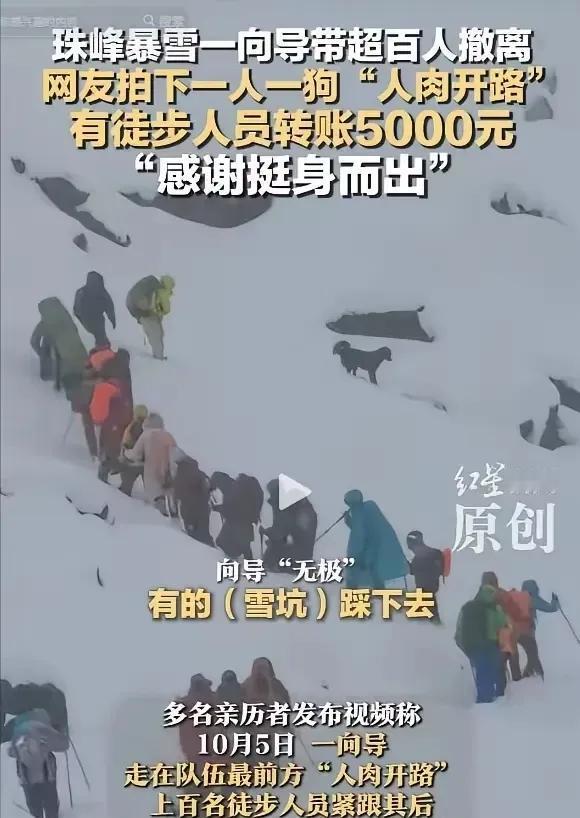太暖心了!西藏珠峰突发暴雪,一向导冒死带百余人雪中撤离,还把狗派到前面带路,历经