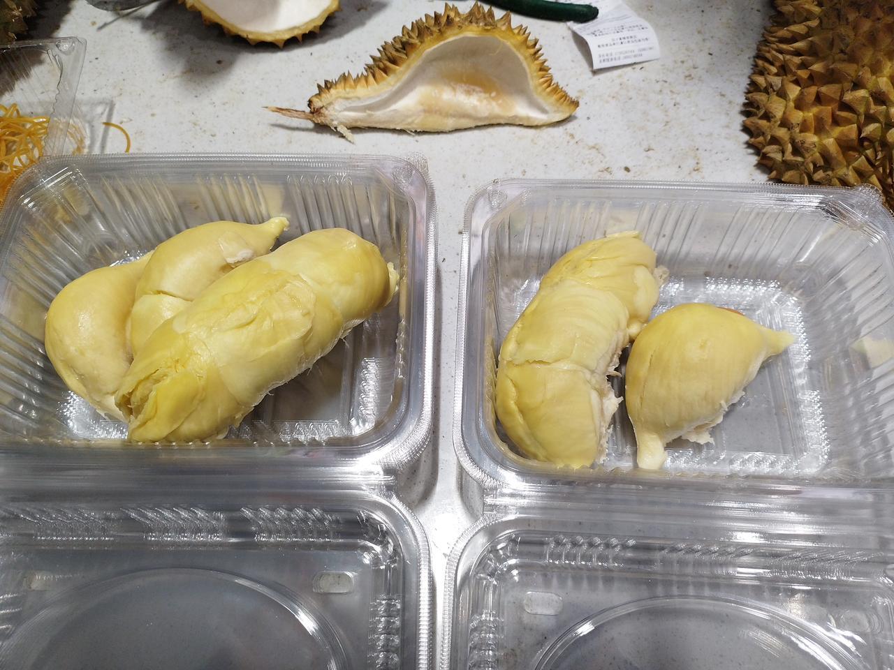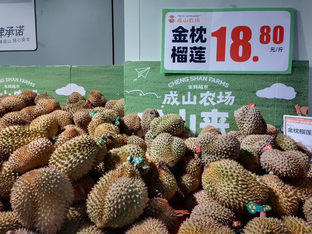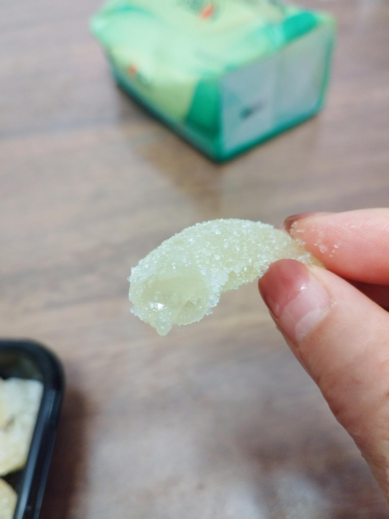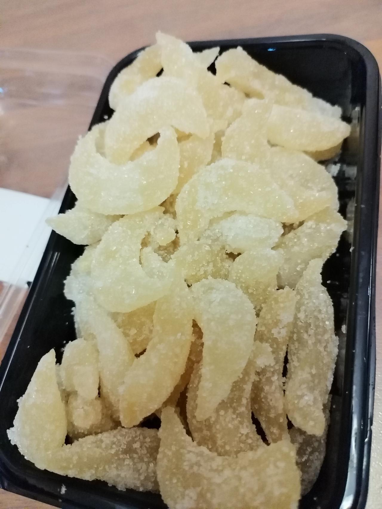 今天去逛御锦城凯德广场新开业的成山农场,这个超市好大呀,货品多的都看不过来,里边有很多其他超市没有的品种,尤其是熟食类,价格也很实惠,我看到烘焙区有一种白白的月牙状甜点,造型别致,晶莹剔透的表面还粘着糖霜,我想一定很好吃,就买了一盒,还买了一个榴莲回来,回来打开一尝,妈呀,这个小月牙太甜了,感觉就是用糖浆倒在模具里凝固出来的,咬开里边还是流动的糖浆,甜的齁嗓子,想把咬开的这个吃完都吃不下去,真的一点都吃不了,从心里抵触,看这一盒怎么办,估计送人都送不出去。