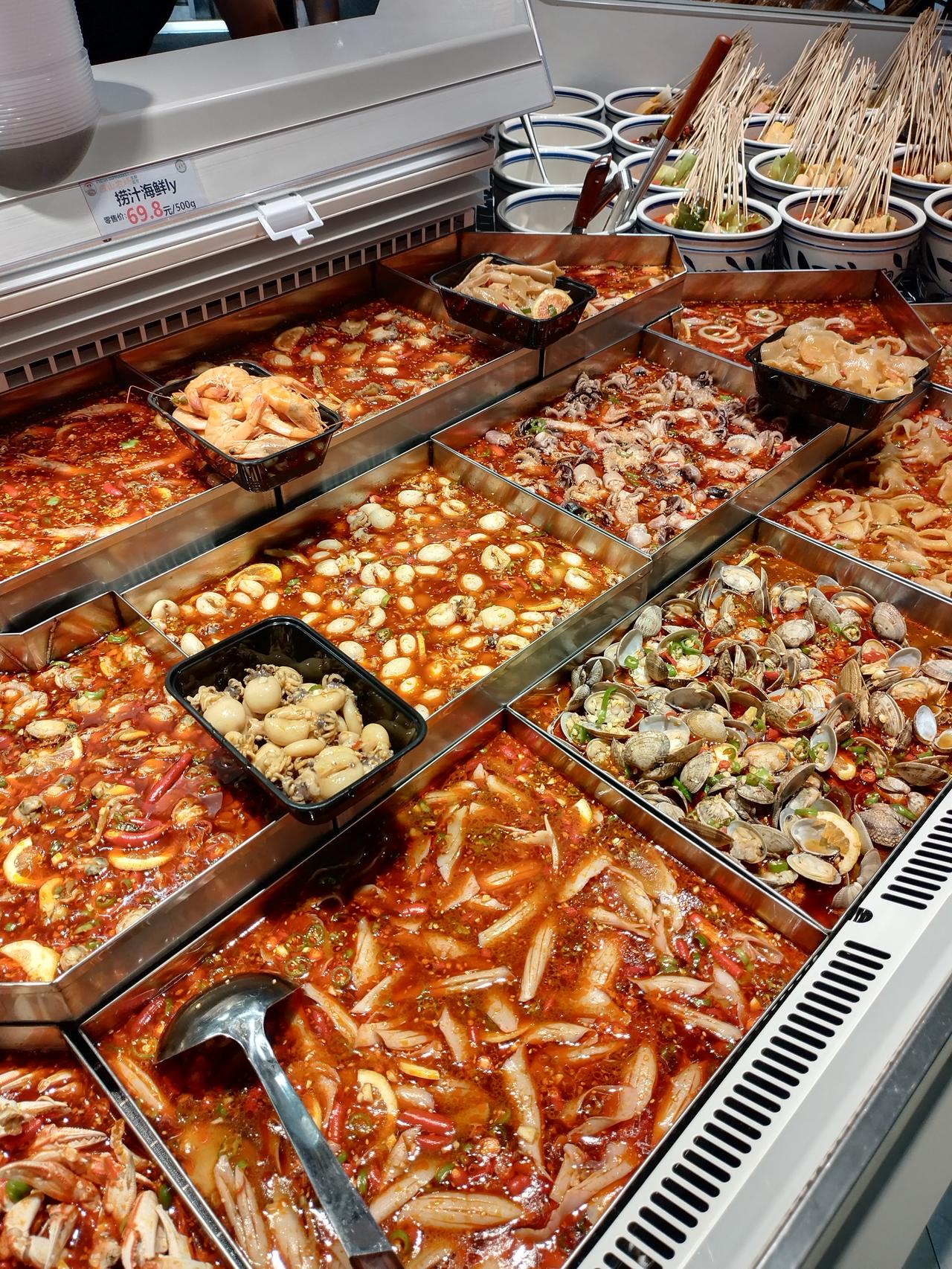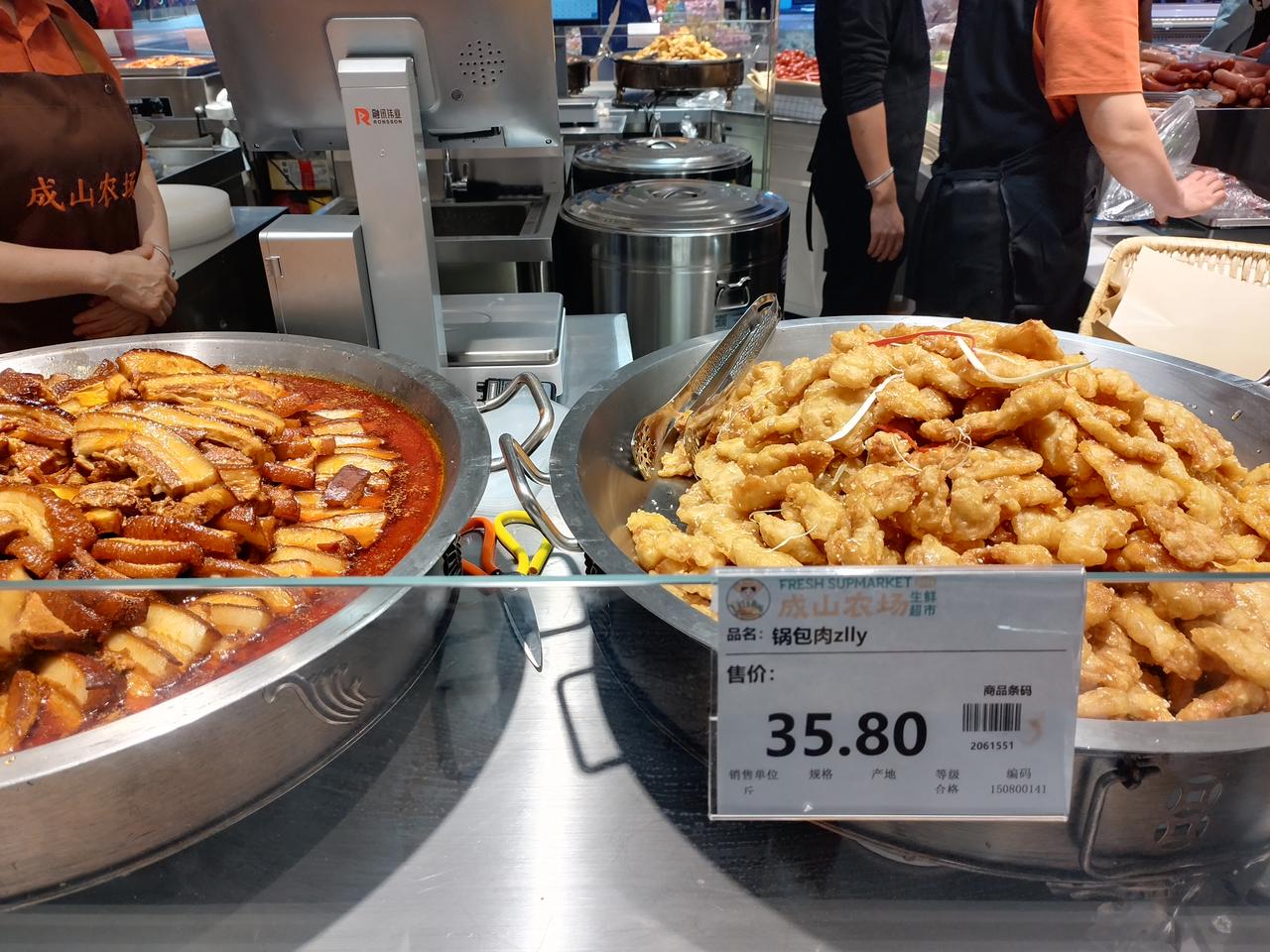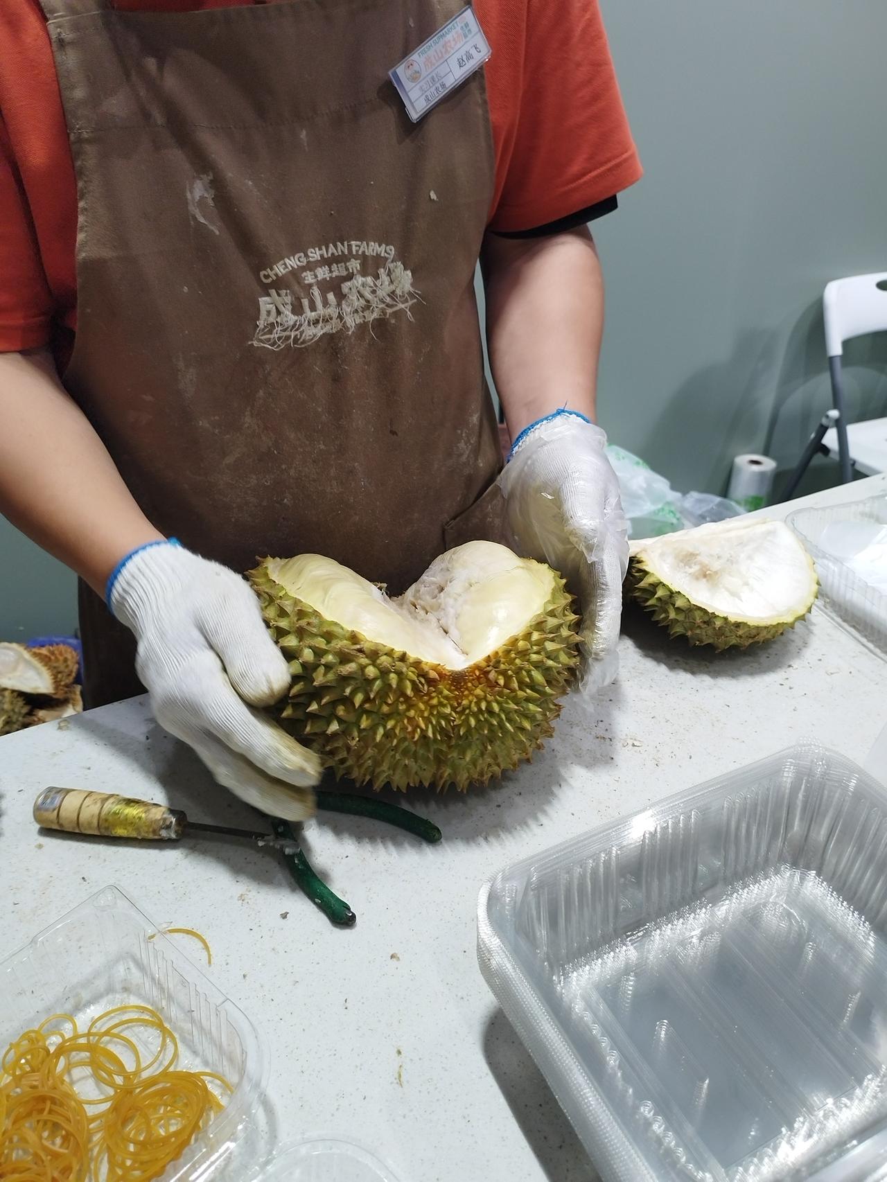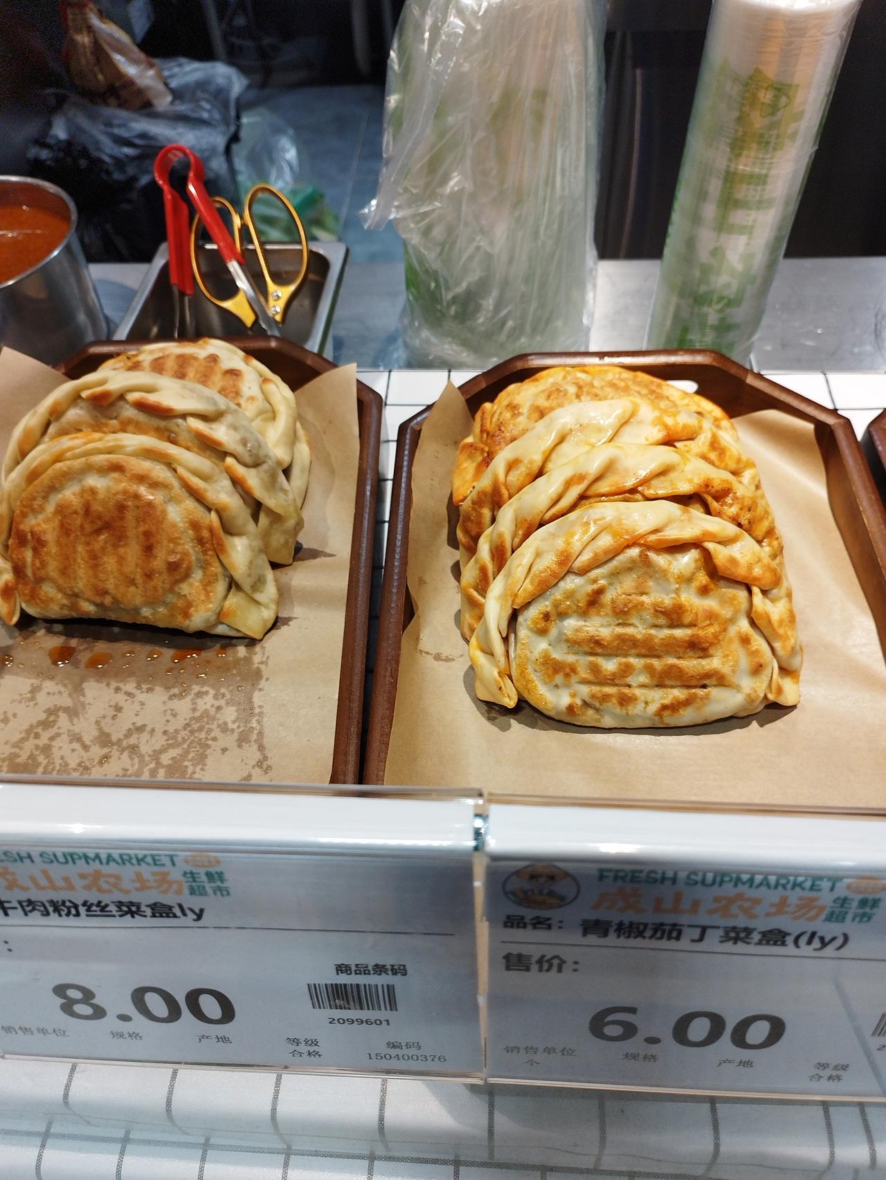 今天去逛御锦城凯德广场新开业的成山农场,这个超市好大呀,货品多的都看不过来,里边有很多其他超市没有的品种,尤其是熟食类,价格也很实惠,我看到烘焙区有一种白白的月牙状甜点,造型别致,晶莹剔透的表面还粘着糖霜,我想一定很好吃,就买了一盒,还买了一个榴莲回来,回来打开一尝,妈呀,这个小月牙太甜了,感觉就是用糖浆倒在模具里凝固出来的,咬开里边还是流动的糖浆,甜的齁嗓子,想把咬开的这个吃完都吃不下去,真的一点都吃不了,从心里抵触,看这一盒怎么办,估计送人都送不出去。