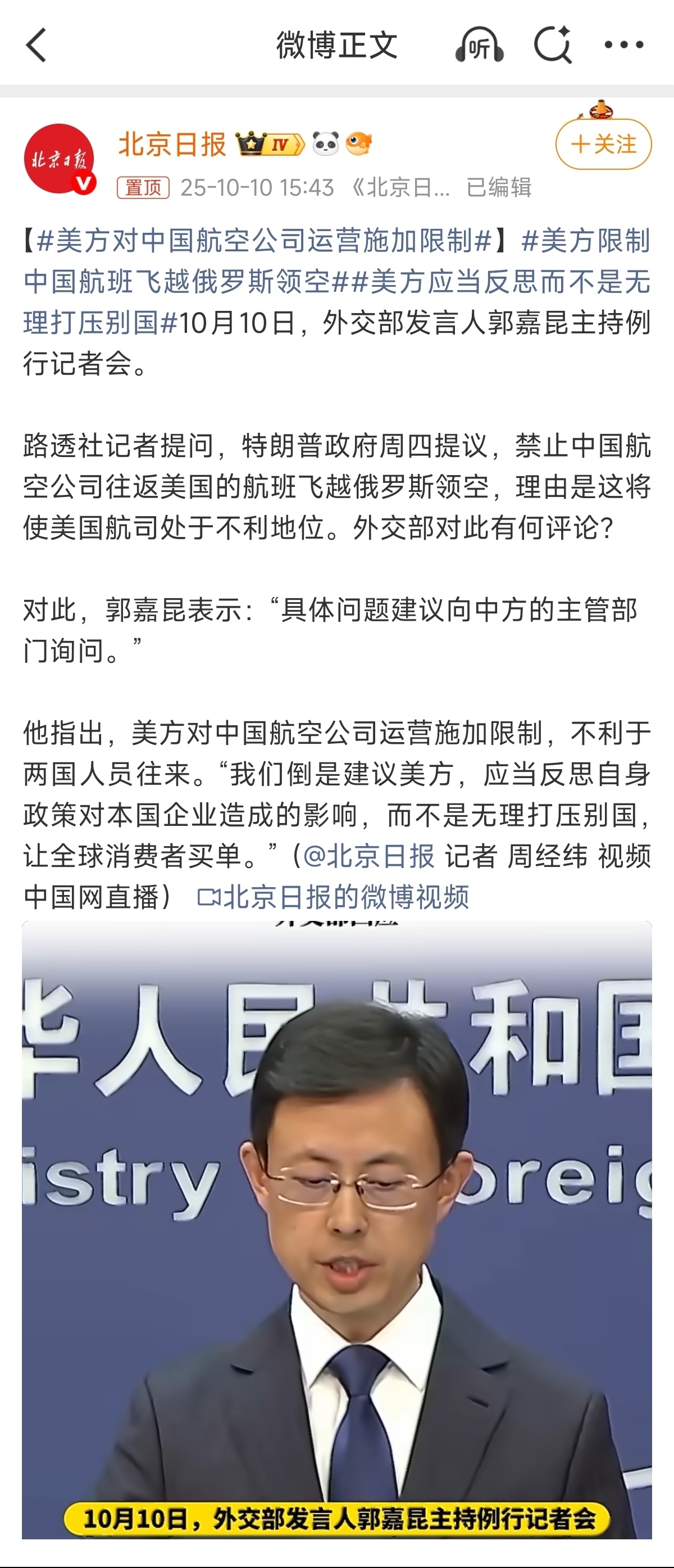 美方限制中国航班飞越俄罗斯领空美帝:我不能飞,你们也不要飞。。。还说不是帝国主义