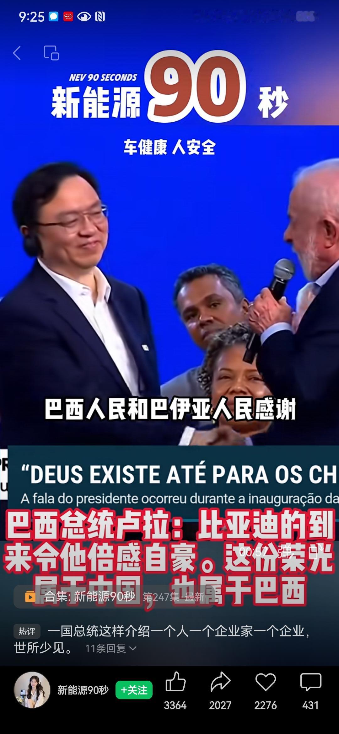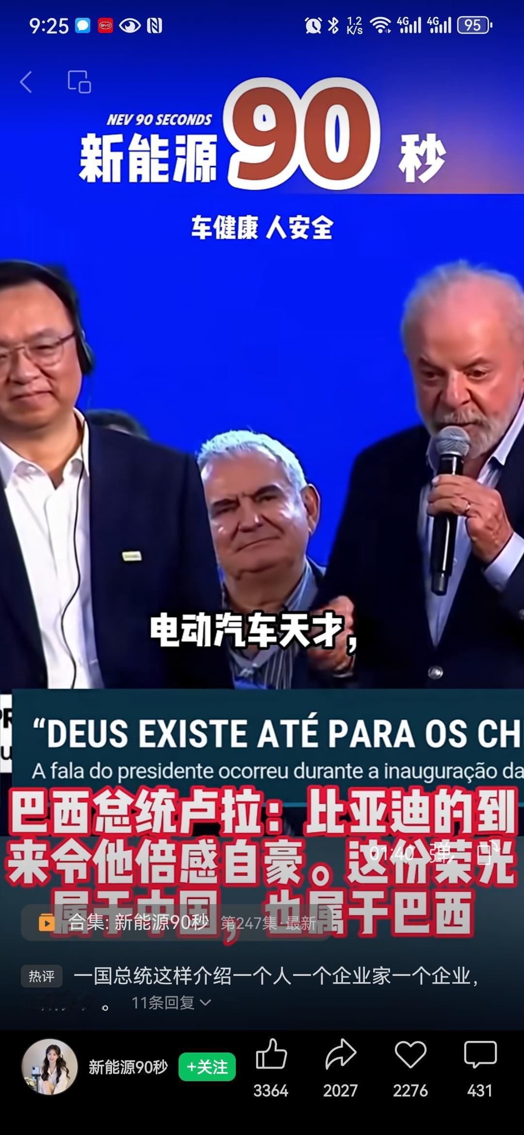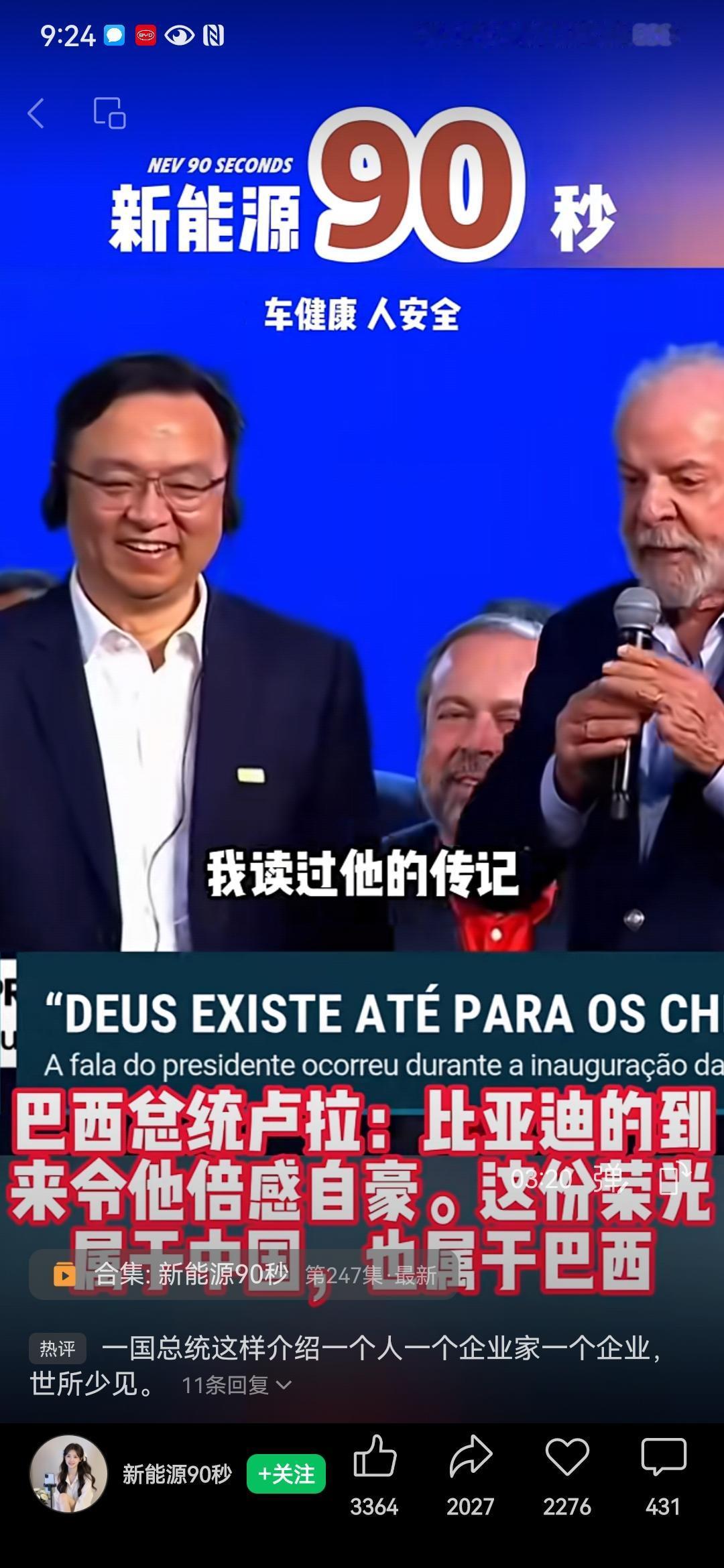 巴西总统:比亚迪来巴西是上帝的馈赠! 万万想不到,巴西总统卢拉不仅参加了比亚迪1