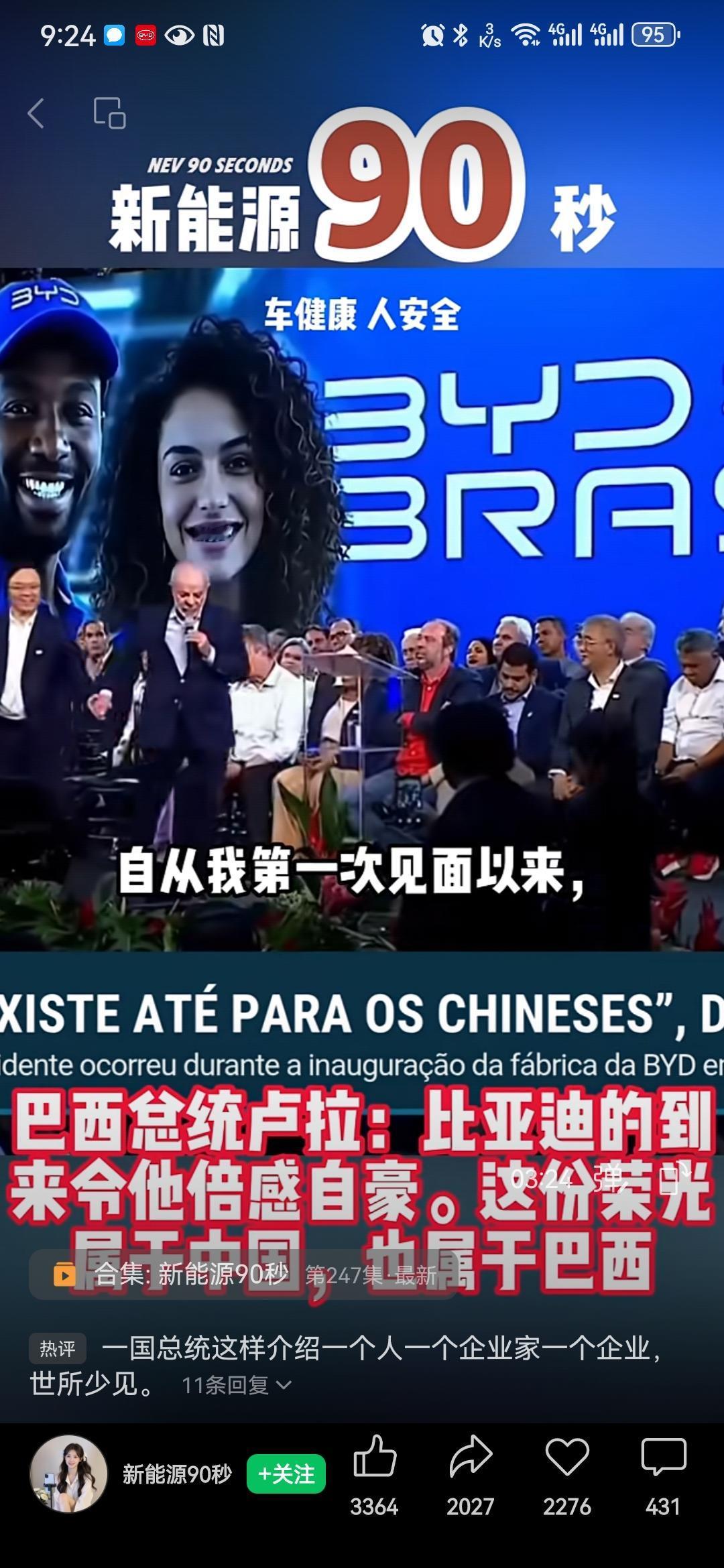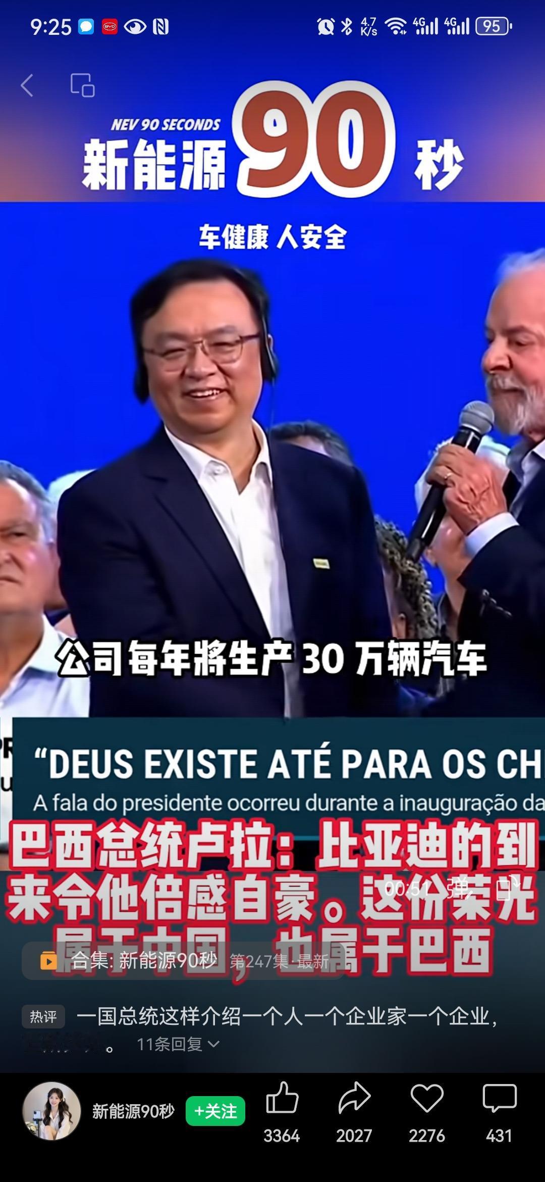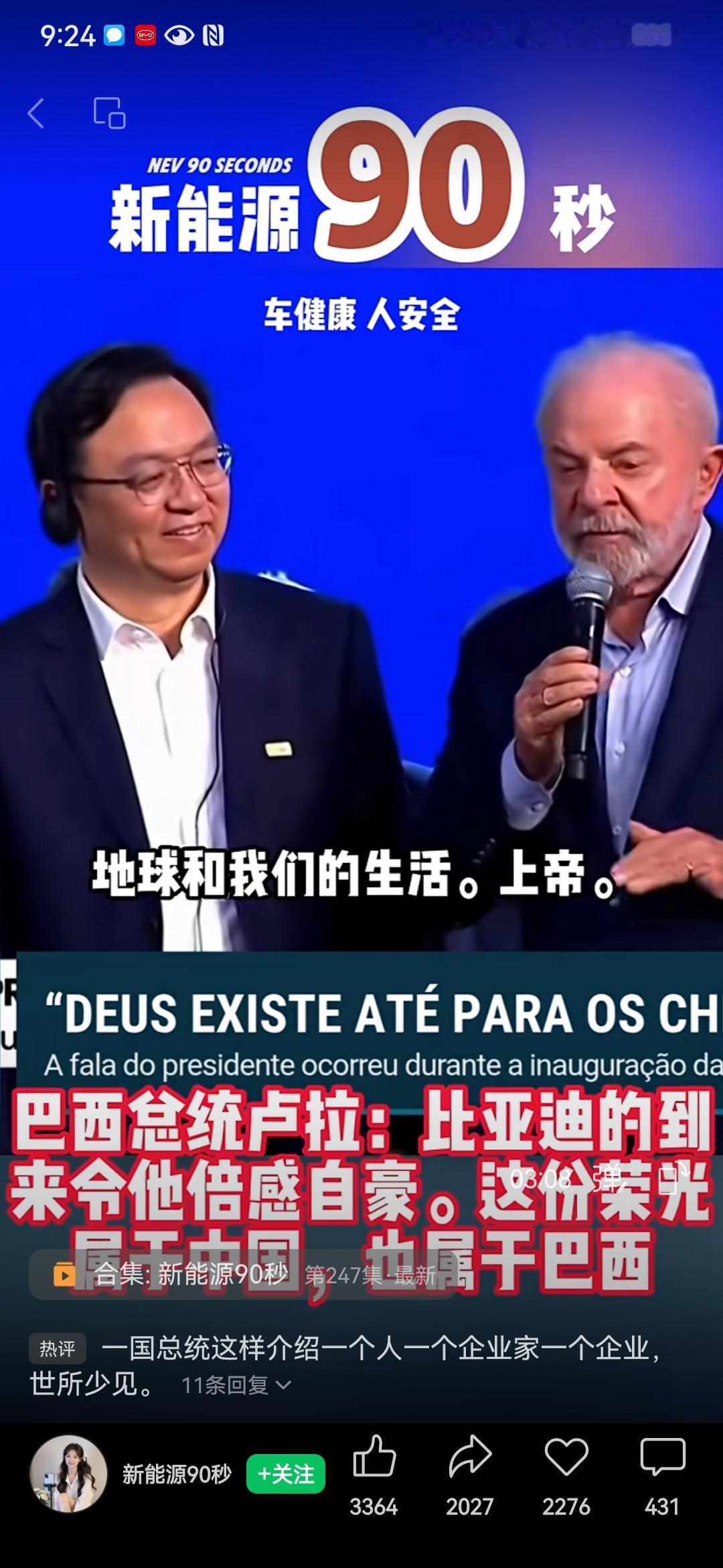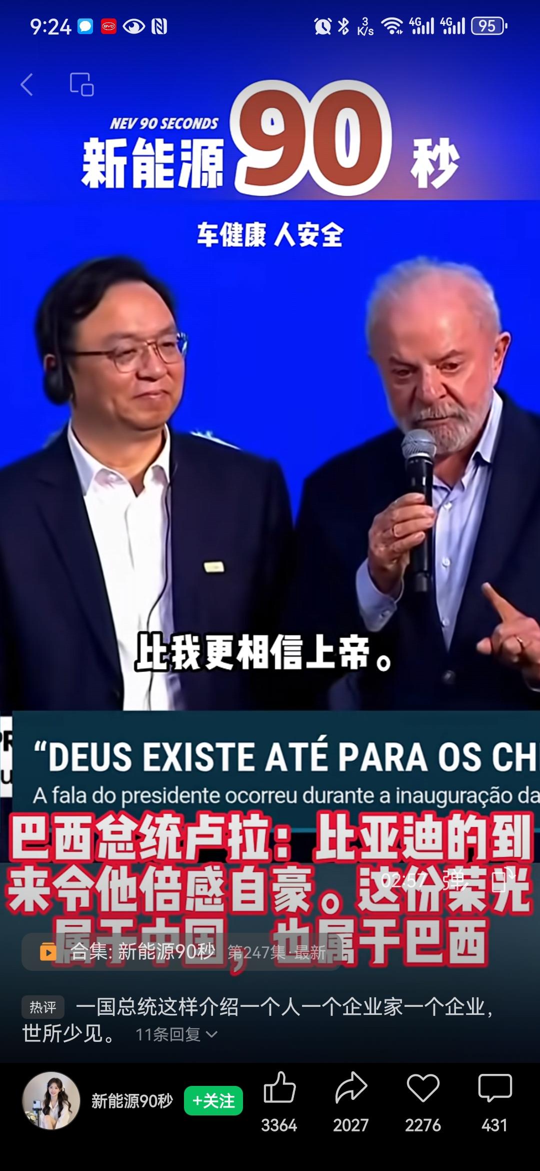 巴西总统:比亚迪来巴西是上帝的馈赠! 万万想不到,巴西总统卢拉不仅参加了比亚迪1