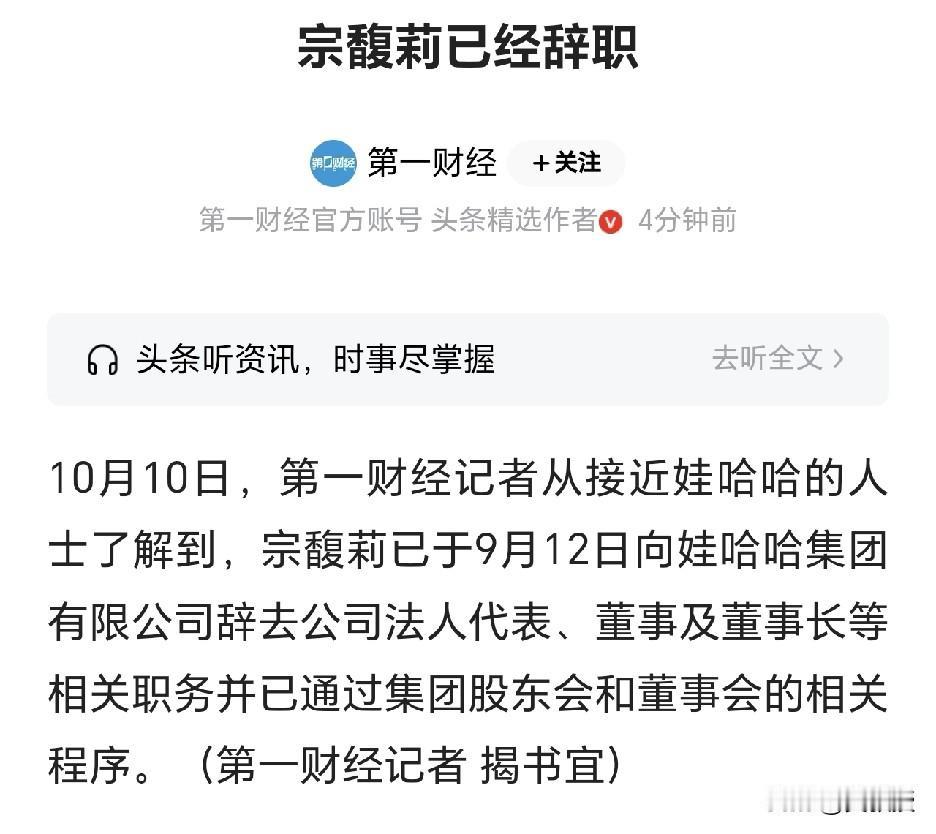 突发 宗馥莉已经辞职 有点突然