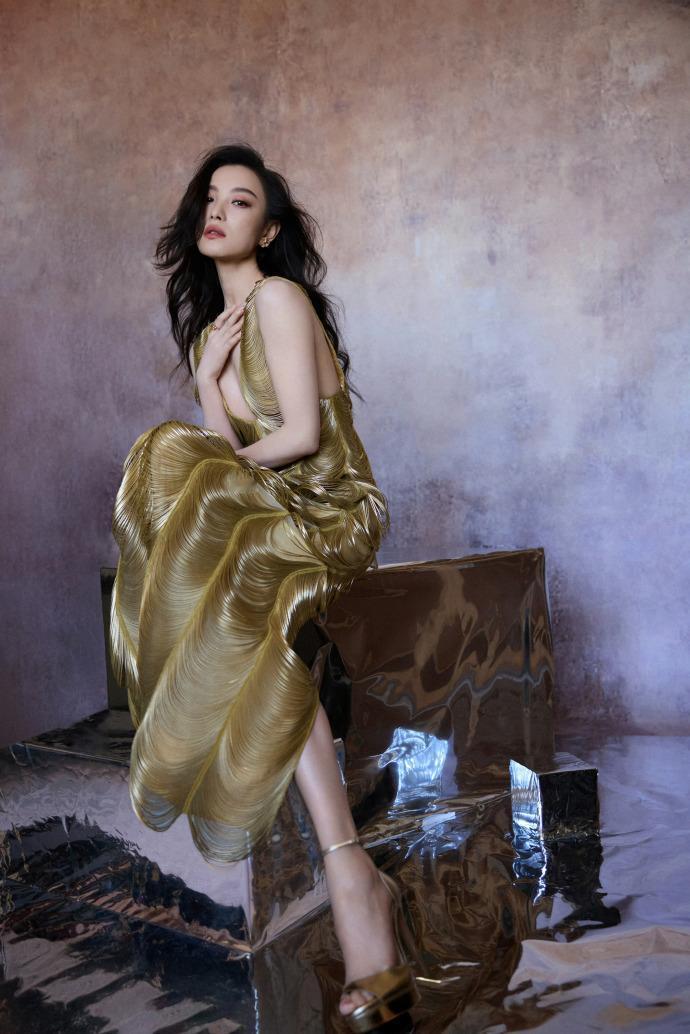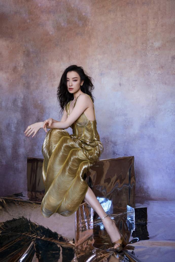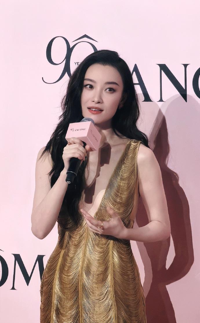 今天倪妮在出席时尚活动的时候穿了一件金色的吊带裙,看起来有种光彩照人的感觉。