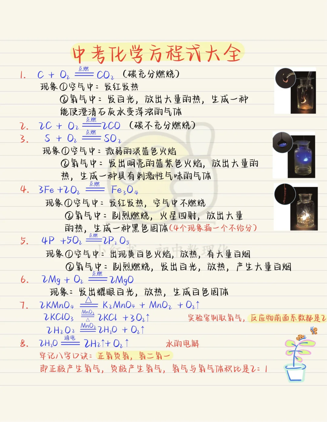 中考所有的化学方程式都在这里了,你还不快看看吗!