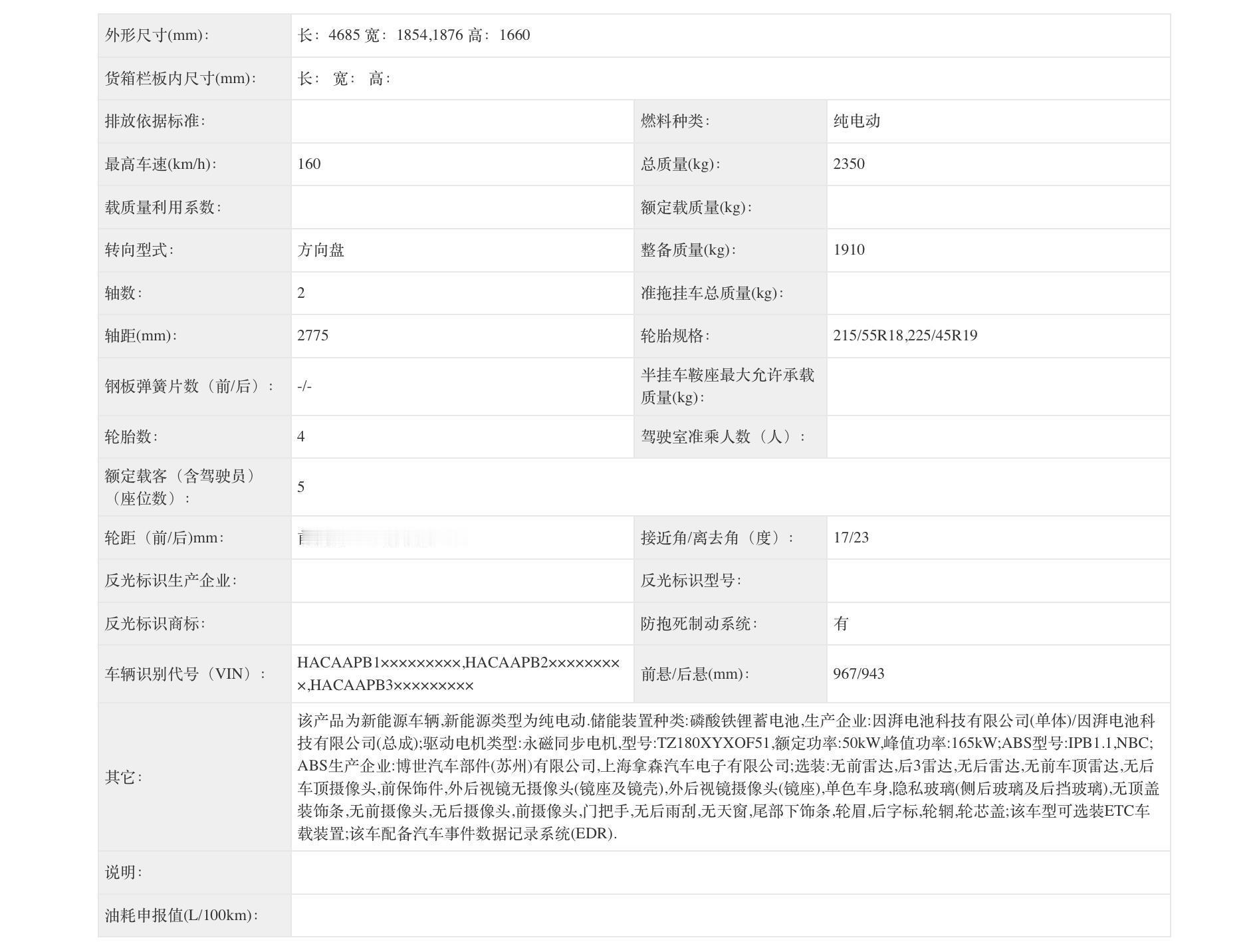 埃安i60申报,车长4685mm,165kW单电机