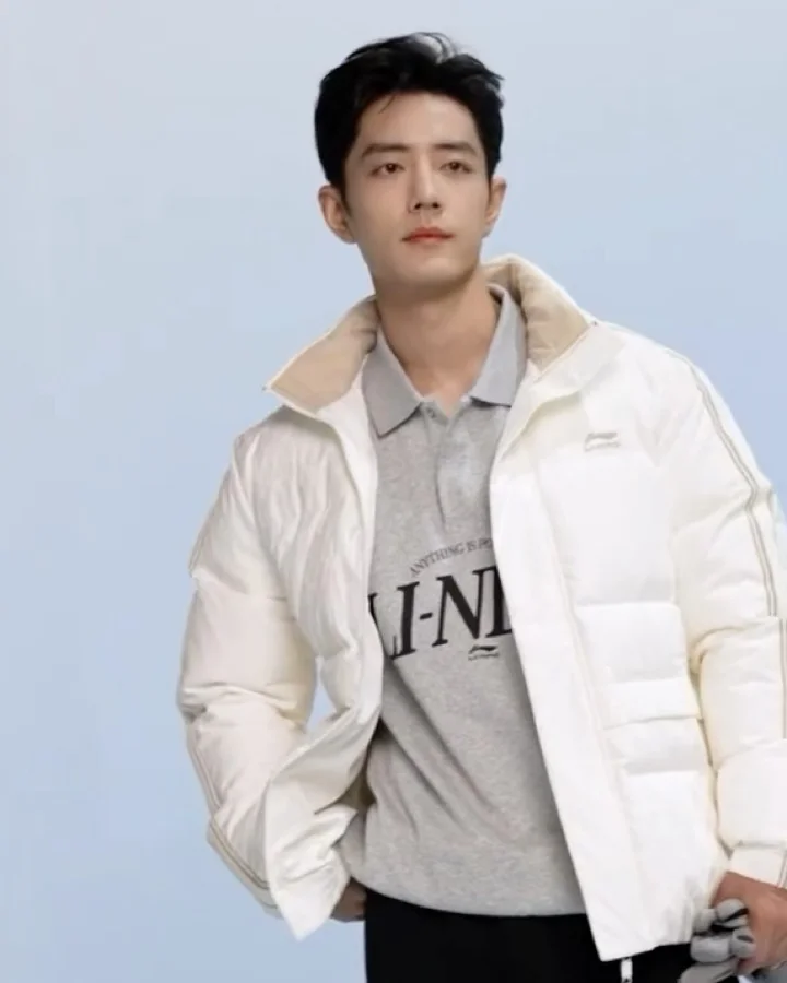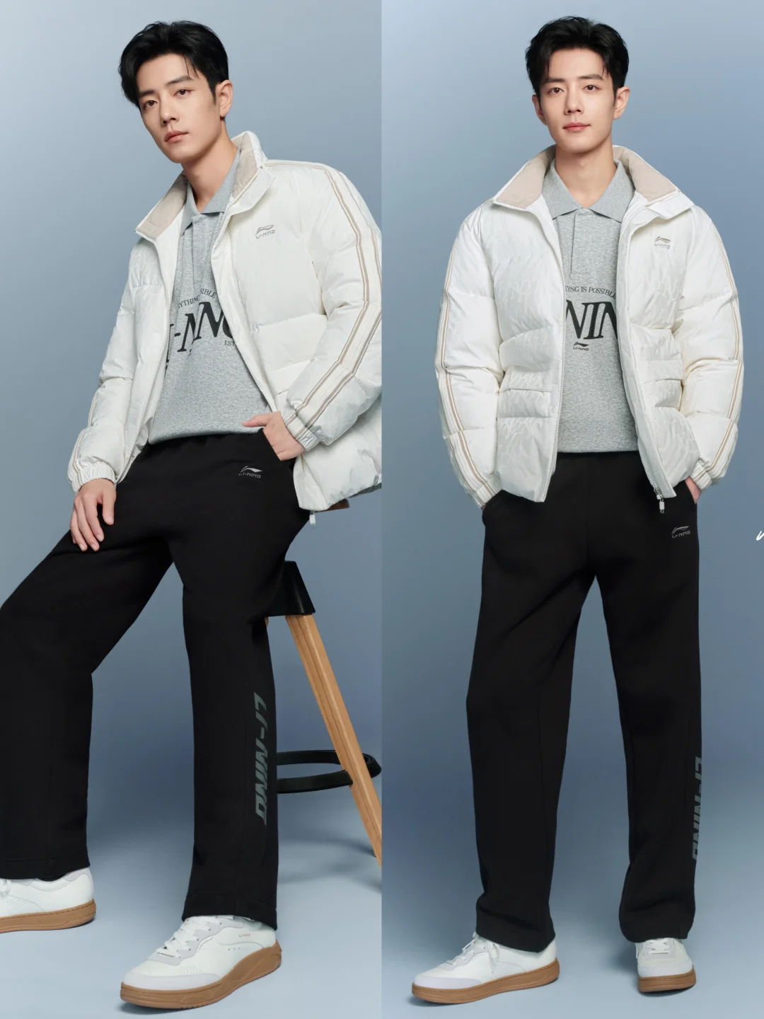 高级提花白色羽绒服与和光复古运动鞋叠加灰色 Polo 衫内搭+黑色直筒运动裤,松弛感拉满又不失精致度。肖战的审美真的绝,把国潮李宁的质感与时尚感完美呈现,这套穿搭建议男生们都来抄作业!!