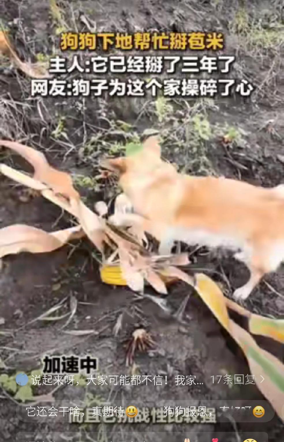 “不可思议!”黑龙江一女子和家人下地掰玉米,家养的狗狗也跟着来到玉米地,还没等主人开始干活,突然狗狗跳起来咬倒玉米杆,然后用嘴巴将玉米咬掉!最绝的是它还将给玉米剥掉皮。 这黄狗是前年从邻居家抱来的土狗,平时看家护院没发现特别。它专挑熟透的玉米啃,咬下来的玉米棒子整整齐齐码在田埂上,金黄的玉米粒一颗没破。 女人举着手机录视频的手直抖,狗子剥玉米皮利索得像扯包装纸,剥完还蹭掉须须。地里干活的二叔愣是点了根烟蹲边上瞅,那狗忙活完三穗玉米,尾巴摇得像是等夸。女人掰开狗剥的玉米一看,嚯,比人手剥的还干净。 各位读者你们怎么看?欢迎在评论区讨论。