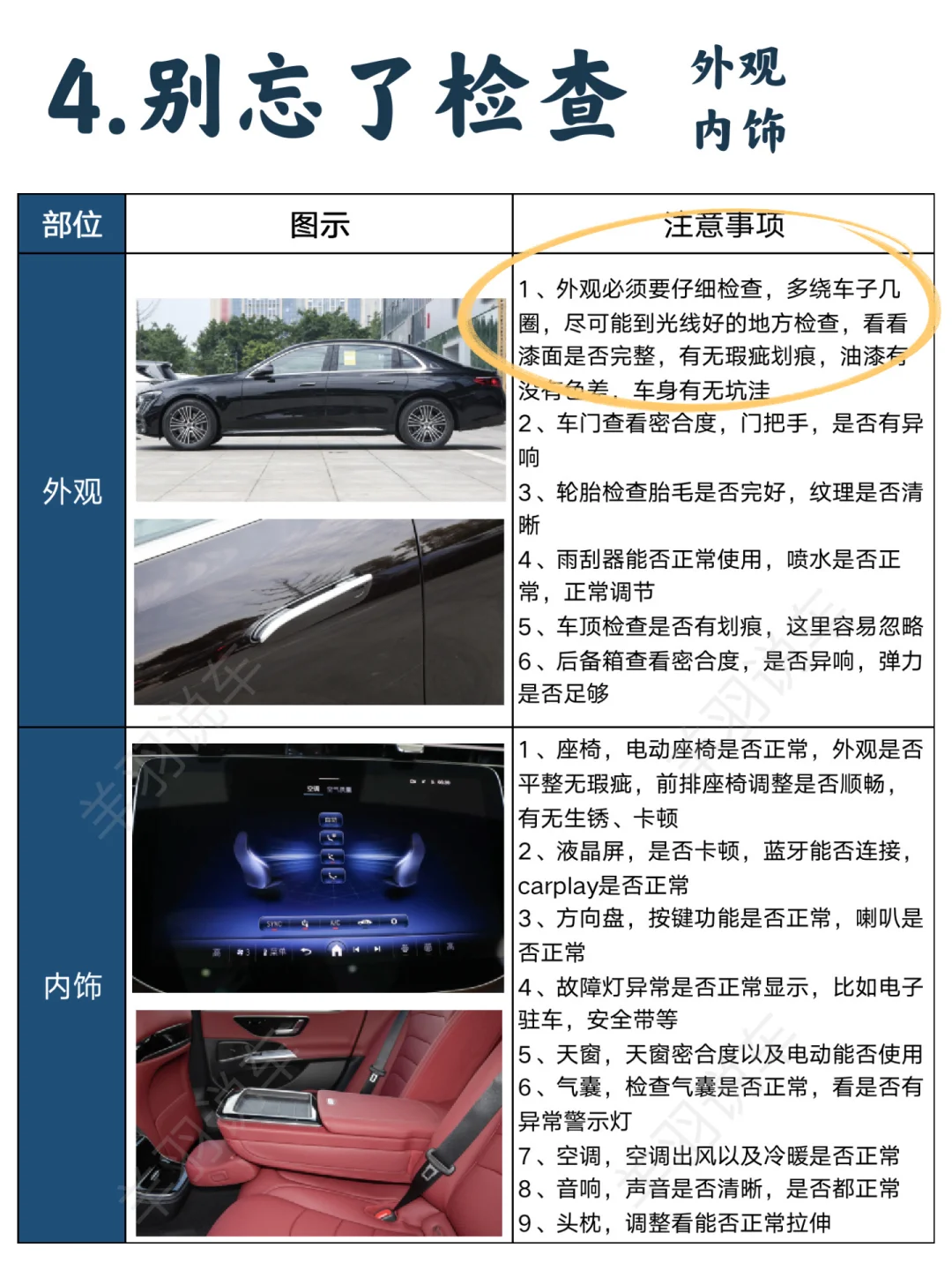 6⃣️不要忘了检查内饰,各个功能