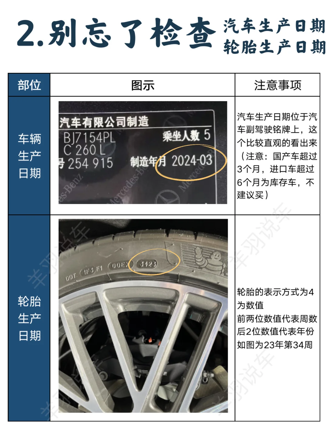 3⃣️不要忘了检查轮胎的日期,晚于汽车生产日期有猫腻🐈
