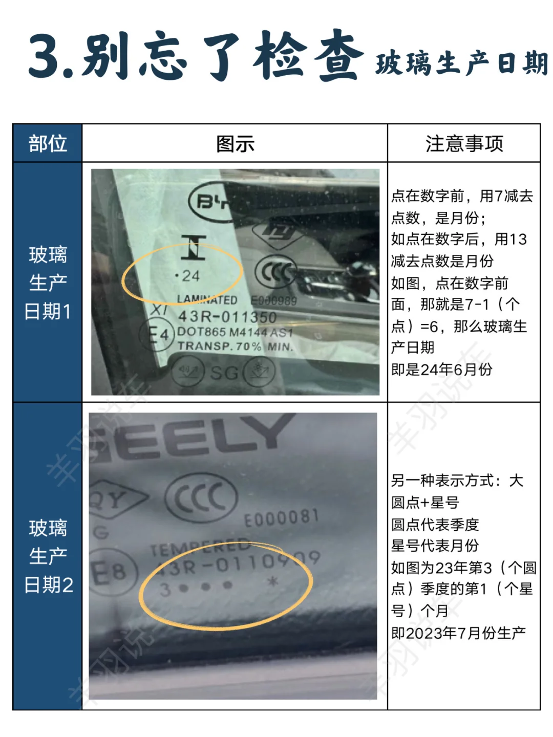4⃣️不要忘了检查玻璃,晚于汽车生产日期有猫腻🐈